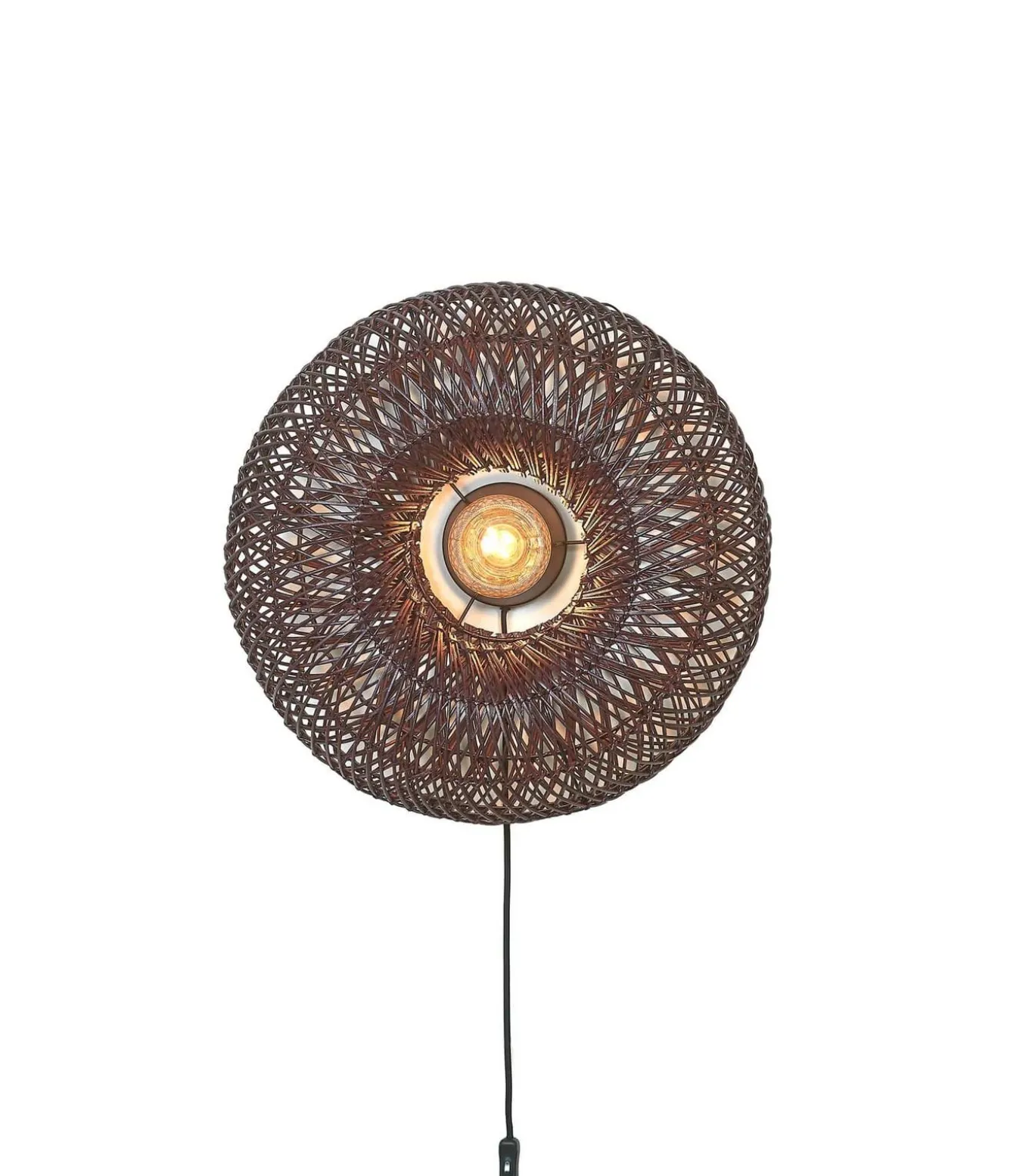 De wandlamp Arizona burgundy brengt een ode aan de uitgestrekte, ruige schoonheid van de woestijnlandschappen in Arizona. Deze bolvormige muurlamp, handgemaakt van geweven rotan, roept de warmte en organische vormen van de woestijn op. De vloeiende lijnen en ronde vormen van de lamp zijn geïnspireerd op de zachte, golvende duinen en de harmonieuze rondingen van de canyons, waar de natuur en het landschap hun eigen kunstwerken creëren. Het gebruik van rotan weerspiegelt de natuurlijke materialen die in het landschap van Arizona overvloedig aanwezig zijn. De diepe, aardse tinten van burgundy roepen beelden op van de roestrode rotsformaties bij zonsondergang. Perfecte wandlamp voor wie houdt van natuurlijke en stijlvolle verlichting!