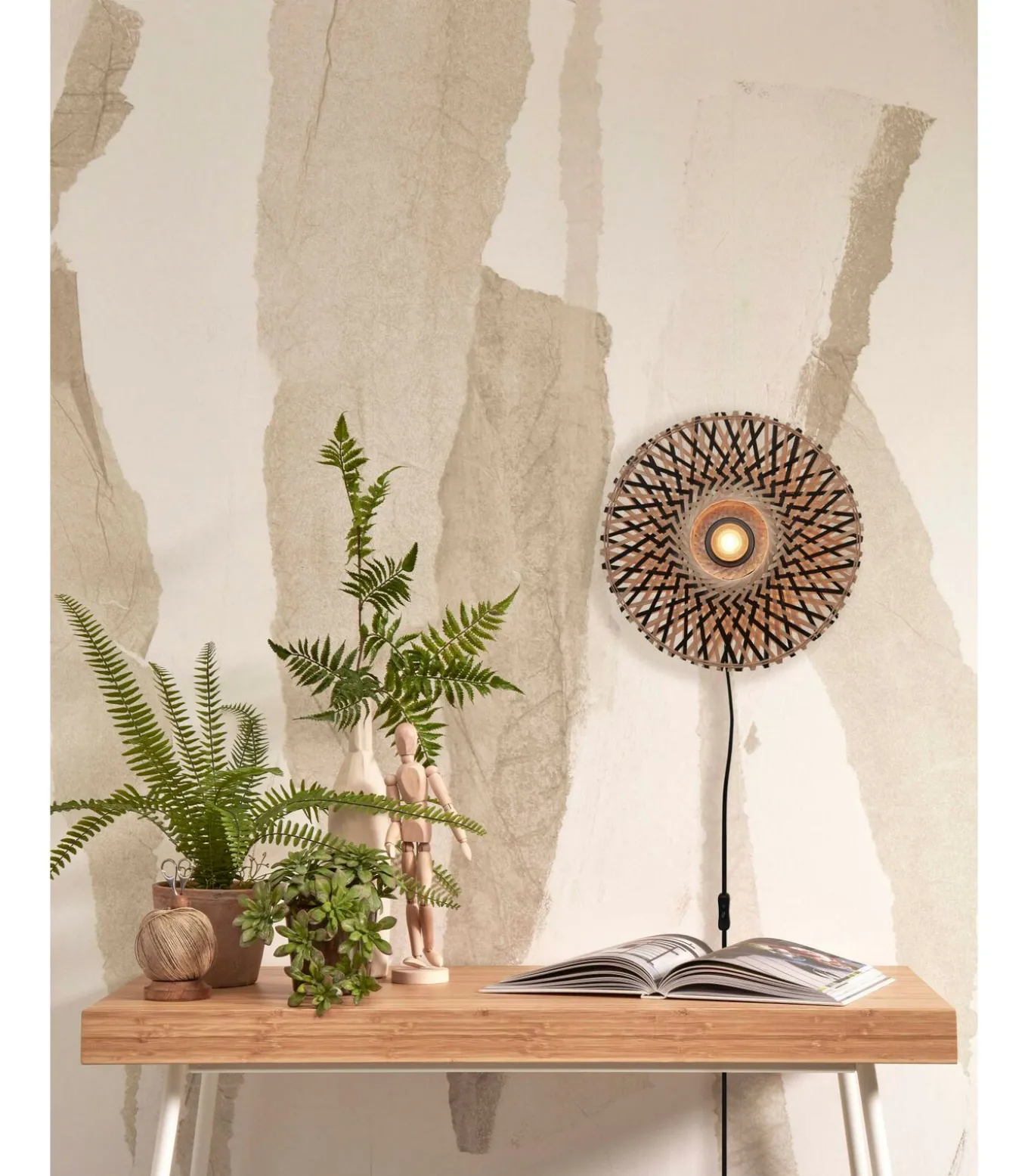 Wandlamp Kalimantan – Bamboe/Zwart – Ø30cm