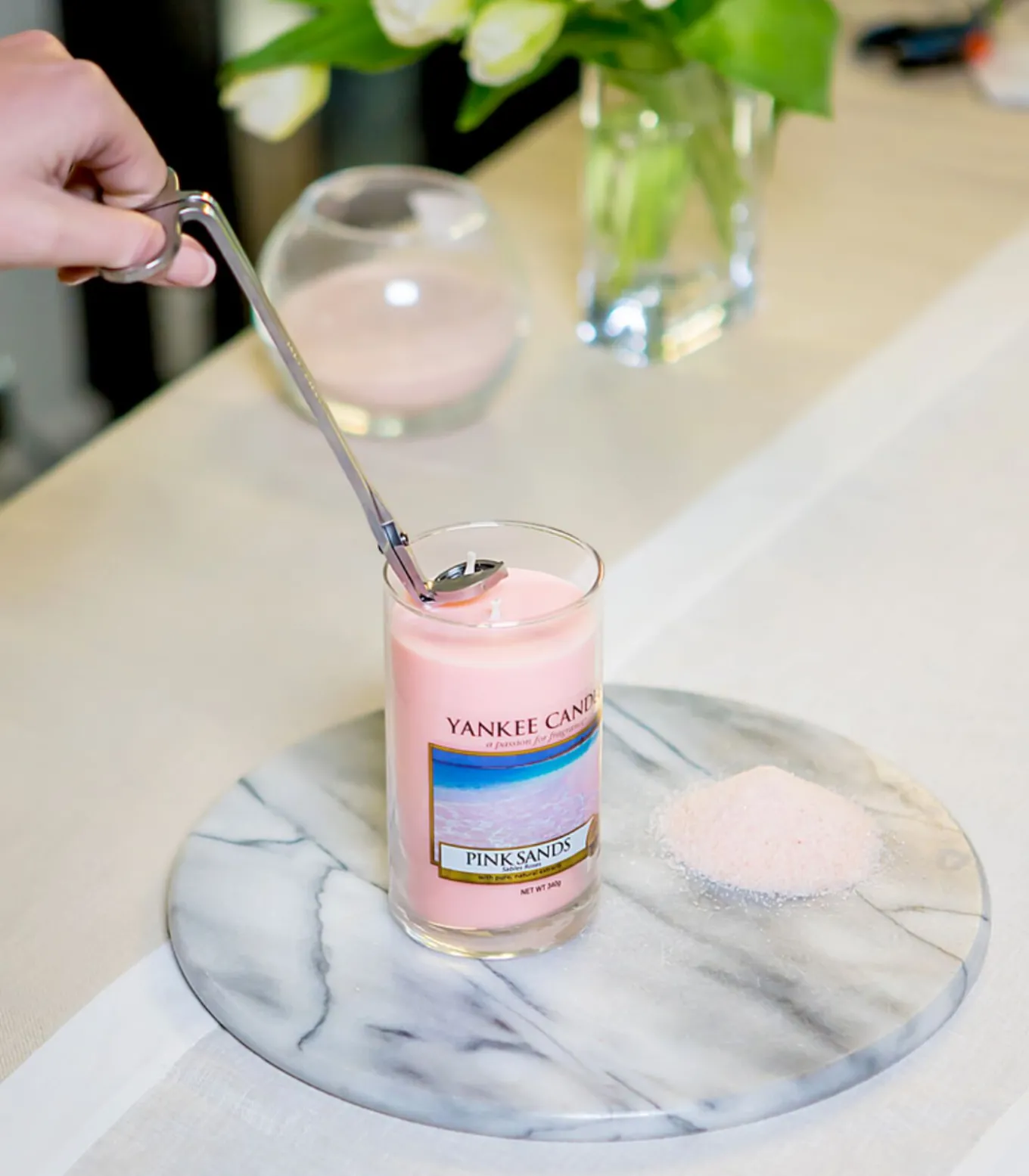 Om optimaal van uw kaarsen te genieten, is een zekere mate van zorg vereist.Door de lonten goed bij te knippen, branden uw kaarsen optimaal en gaan ze langer mee. De lont van uw kaars moet om de vier uur worden bijgeknipt. Laat de kaars op kamertemperatuur komen en knip de lont vervolgens af tot 3 mm voordat u hem opnieuw aansteekt. Deze lengte zorgt voor een volledige verbranding, waardoor er minder roetvorming optreedt tijdens het branden. Hier komt onze Perfect Wick Trimmer van pas: plaats de onderkant van de trimmer gelijk met het kaarsoppervlak en kantel de trimmer naar achteren zodat de “elleboog” op het oppervlak rust. Dit houdt de trimmer in een hoek van 45 graden en zorgt ervoor dat de lont de juiste lengte heeft. Simpel! Geniet van uw kaarsen en hun geuren en herhaal dit na elke vier uur brandtijd.