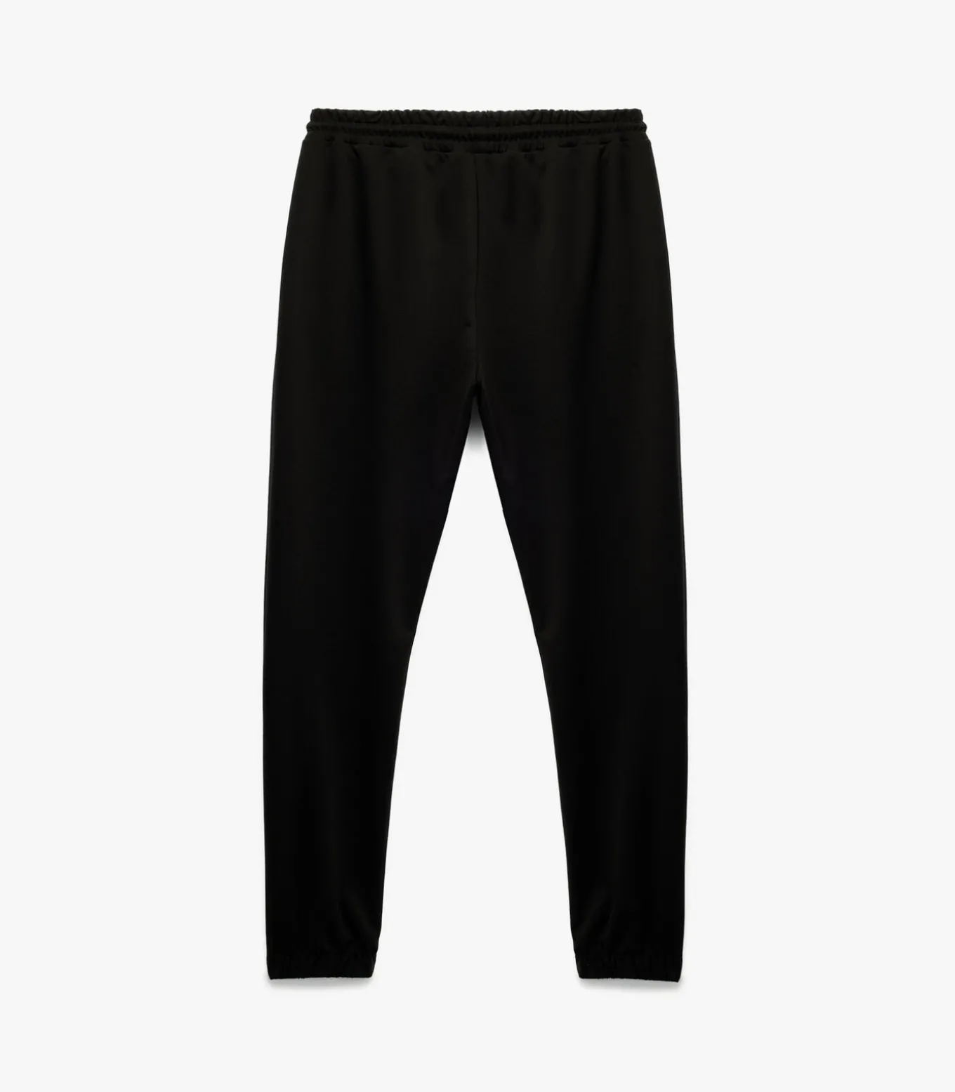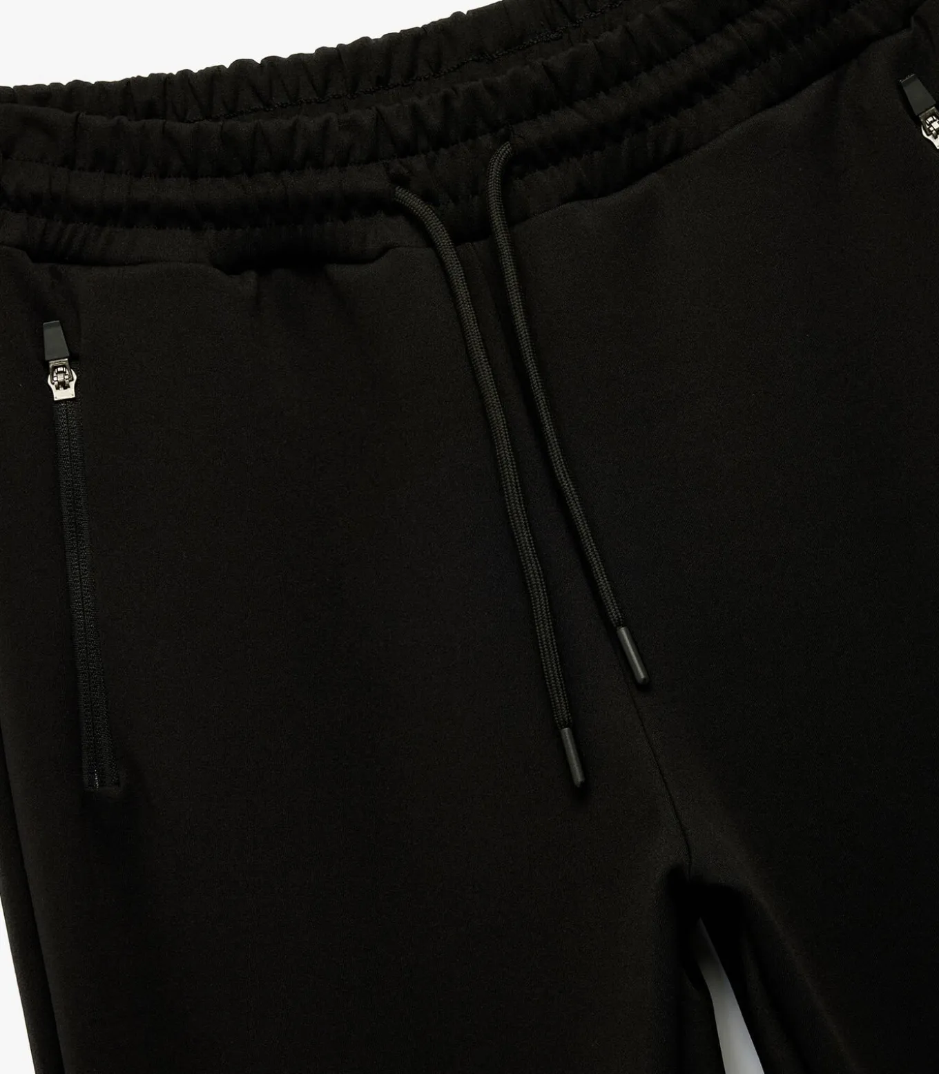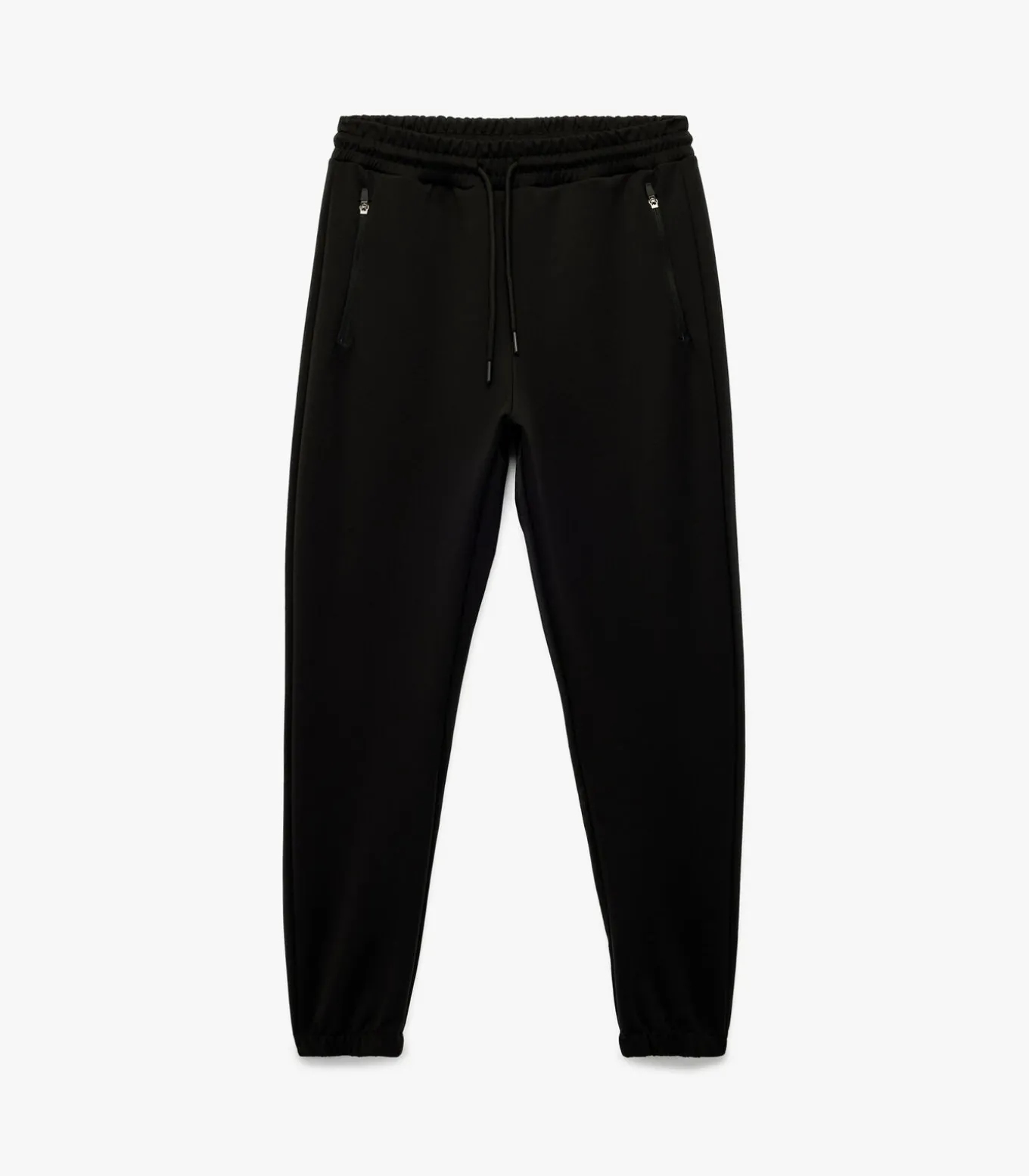 Deze zwarte joggingbroek biedt een perfecte mix van comfort en stijl. Met zijn rechte pasvorm en elastische tailleband met trekkoord is dit kledingstuk veelzijdig en ideaal voor zowel dagelijks gebruik als sportieve activiteiten. De ritszakken voegen niet alleen een praktisch element toe, maar zorgen ook voor een moderne en strakke look. Perfect te combineren met een eenvoudig T–shirt en sneakers voor een sportieve uitstraling.