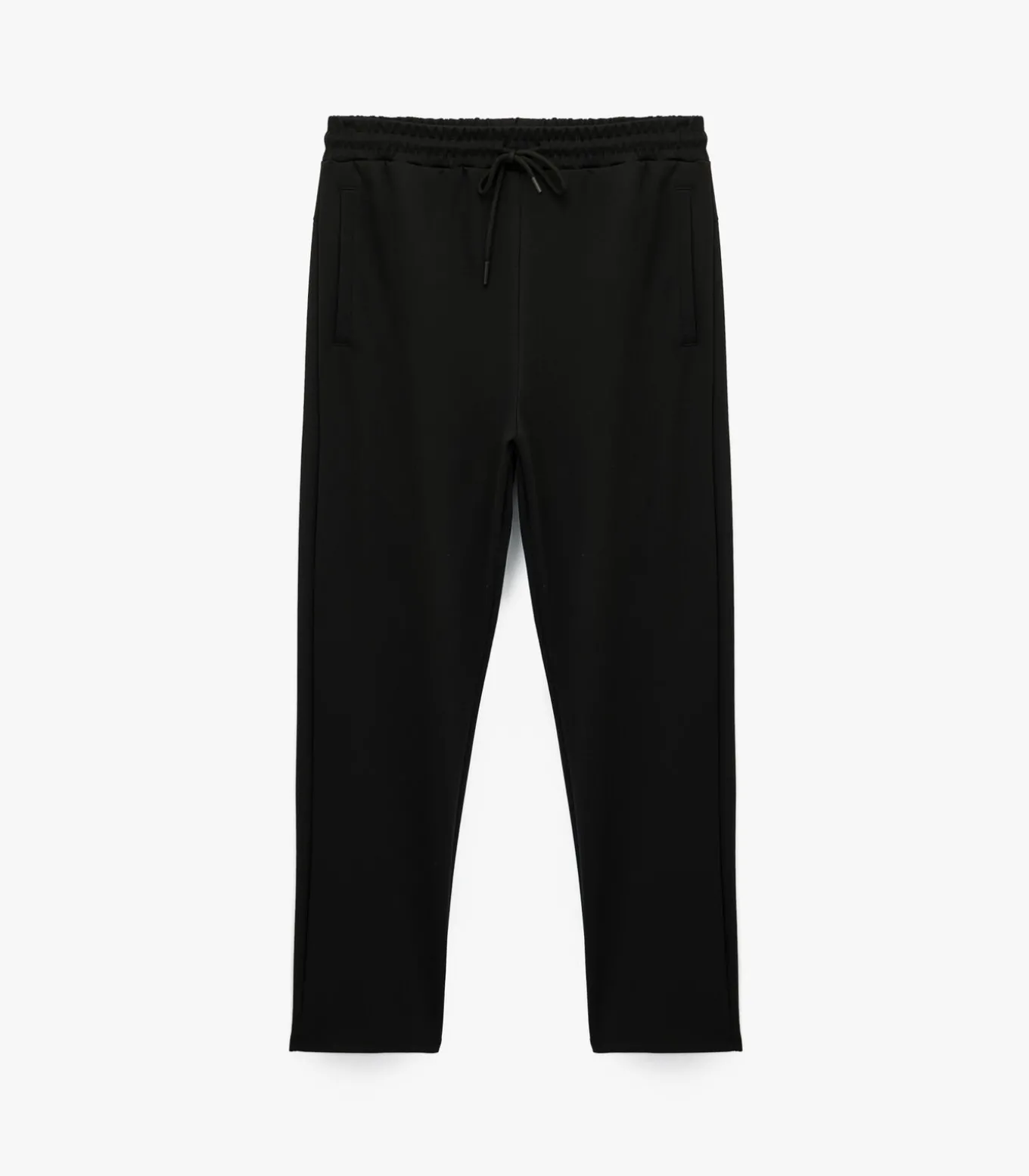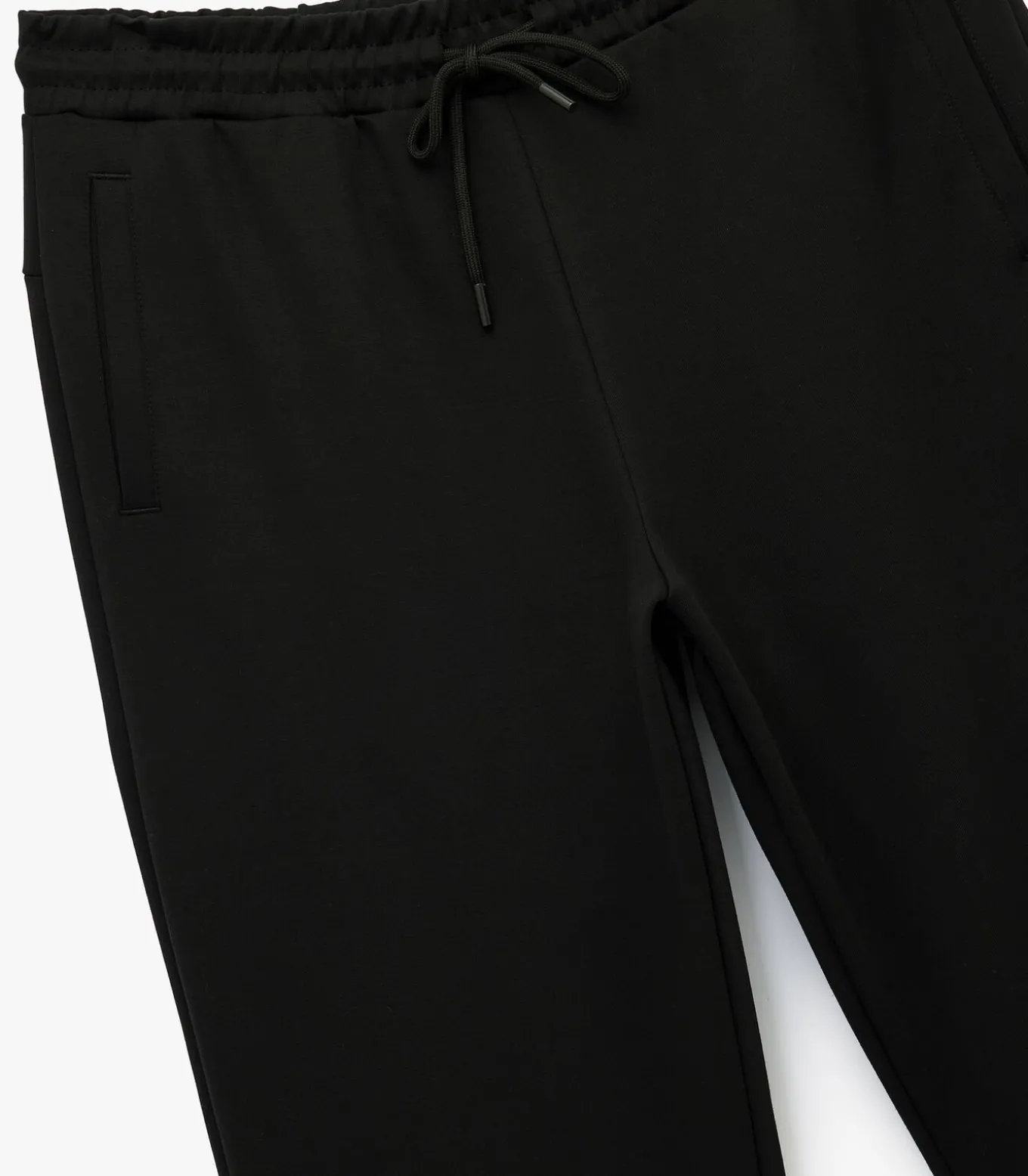 Ontdek comfort en stijl met deze zwarte joggingbroek voor heren. Ontworpen met een elastische tailleband en een handige koordsluiting, biedt deze broek een comfortabele pasvorm die ideaal is voor zowel dagelijkse activiteiten als sport. De zijzakken zorgen voor extra functionaliteit. Combineer met een basic t–shirt en sneakers voor een casual look, of voeg een hoodie toe voor extra warmte op koudere dagen.