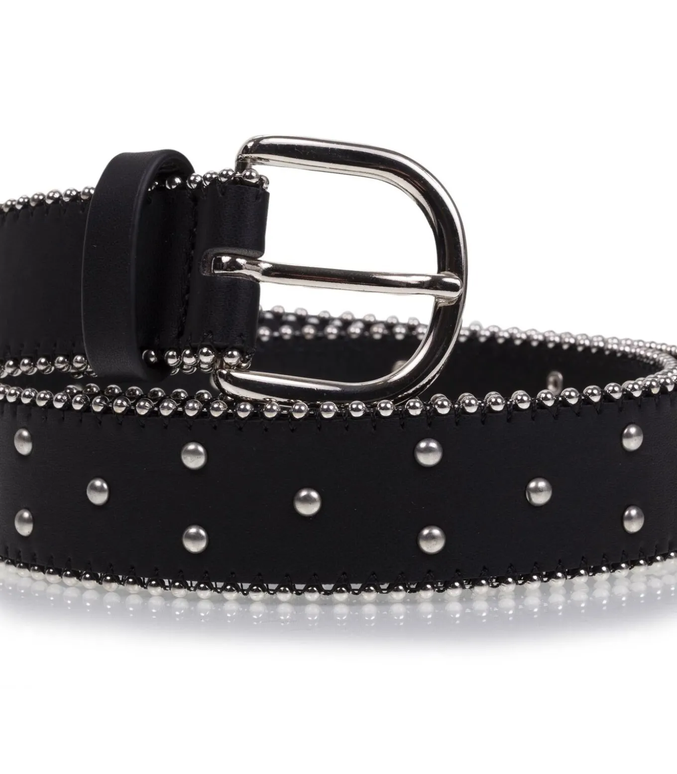Deze zwarte damesriem met zilveren stud details is een must–have accessoire voor al je outfits. Dankzij de zilveren details voegt deze damesriem een vleugje chic toe aan je outfit.