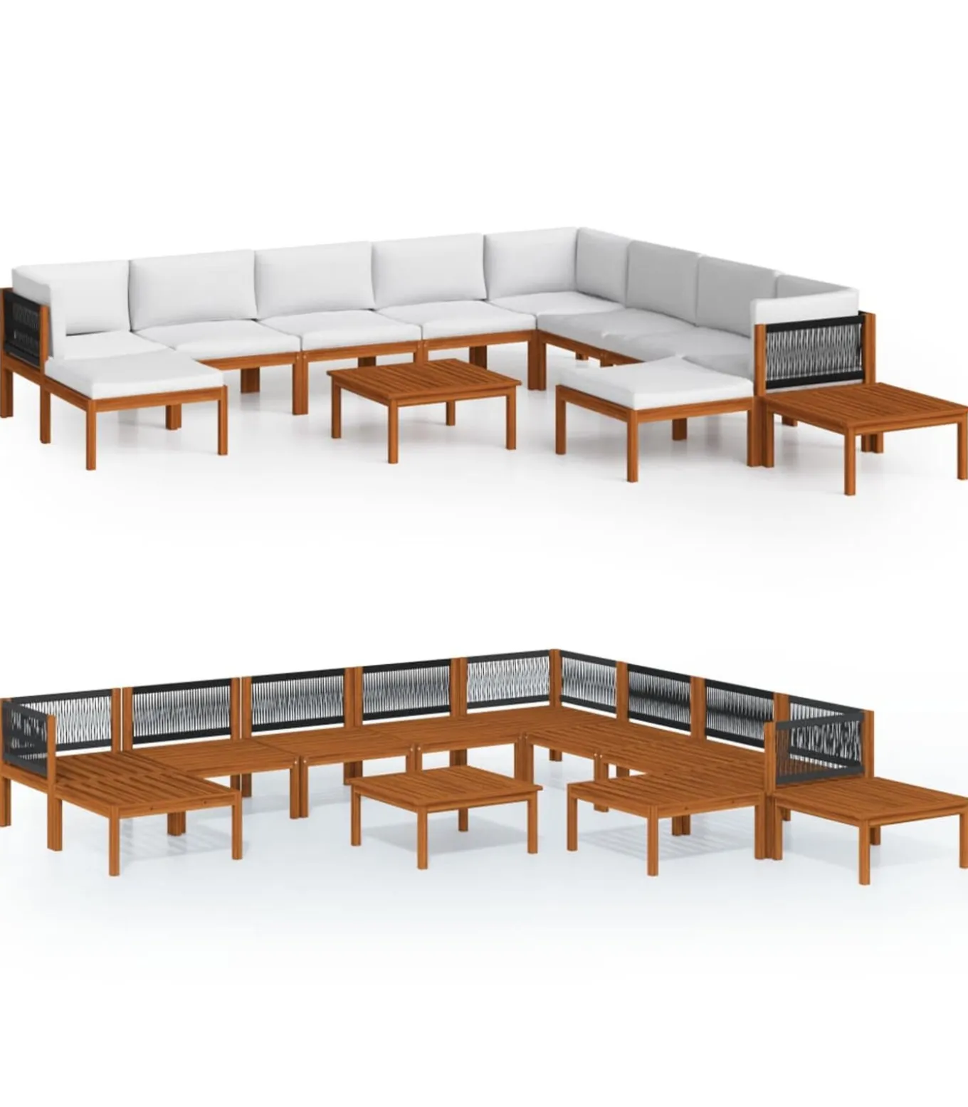 12-delige tuinloungeset met kussens crèmekleurig acaciahout en touw