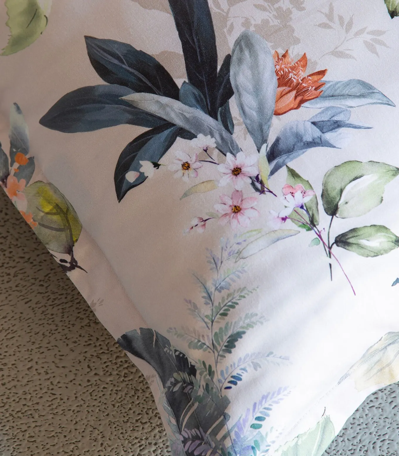 BEDRUKTE KATOENZIJD – 2 persoons beddengoed – 3 stuks: 1 dekbedovertrek 240×220 cm Knoopsluiting + 2 kussenslopen 63×63 cm met vlakke volants 3 cm. – Samenstelling 100% gekamd katoen 210 TC. (82 draden/cm2) Machinewasbaar op 60°C. OEKO–TEX gecertificeerd product: het Oeko–Tex® label garandeert dat gecertificeerde artikelen vrij zijn van schadelijke stoffen die schadelijk kunnen zijn voor de gezondheid.Dit beddengoed is ontworpen voor eindeloos comfort.De gebruikte vezel is gekamd katoen, wat het edelste deel van katoen is. De vezels zijn lang en zeer zacht.De weeftechniek van het satijnkatoen geeft het materiaal een stralende, zachte en zeer zijdeachtige uitstraling. De stof is elegant, duurzaam en zeer comfortabel. De kleuren zijn eigentijds, de lijn is puur en verfijnd, en de afwerkingen zijn minutieus.Voor een goede nachtrust, kiest u voor comfortabele en mooie lakens: uw welzijn is verzekerd….Om de glans van de kleuren te behouden, raden wij wasbeurten aan op 60 °.Als u kiest voor drogen in de droogtrommel, kies dan voor een gematigde temperatuur om de vezels te sparen.Uw beddengoed zal zachter worden na meerdere wasbeurten.