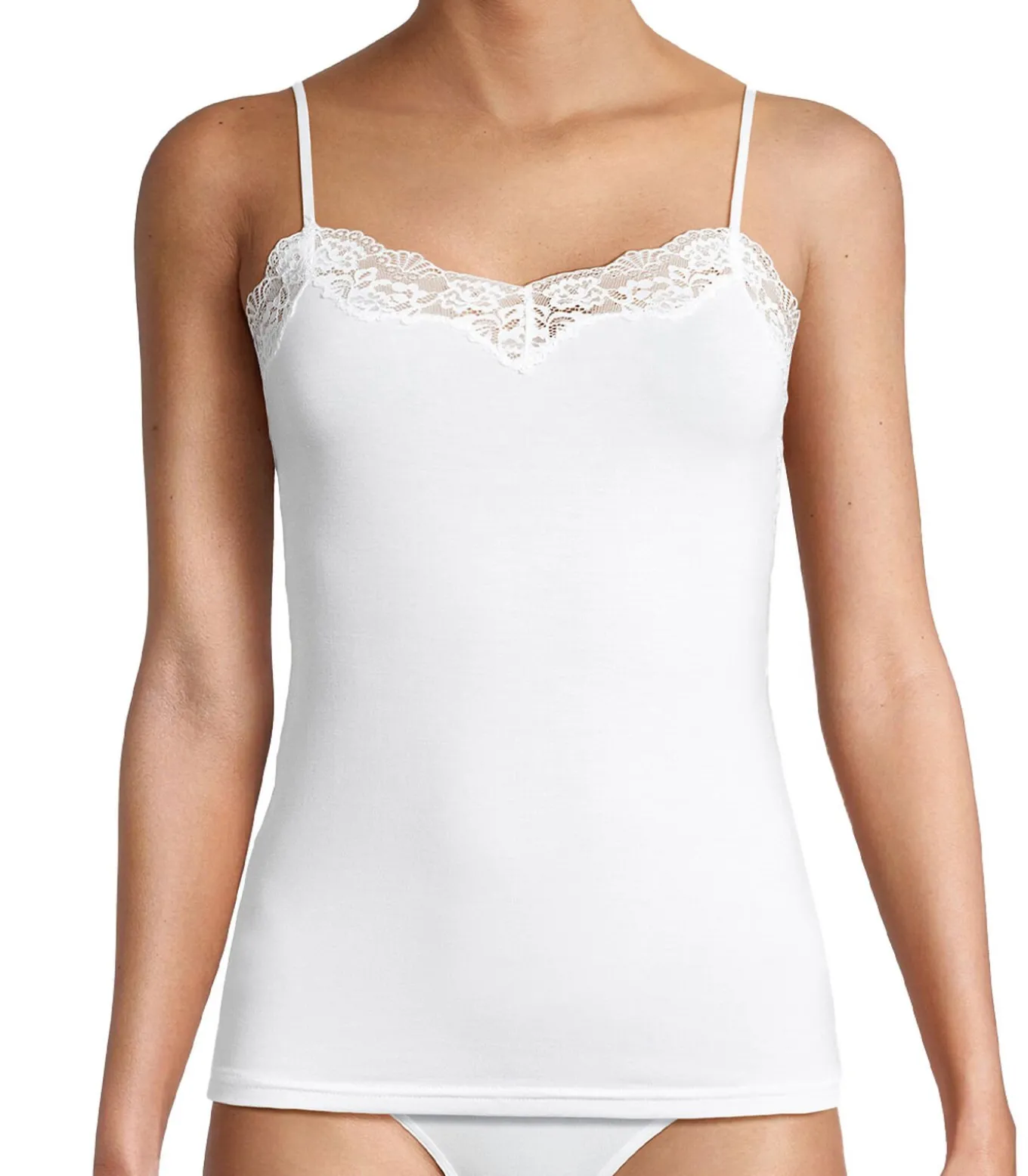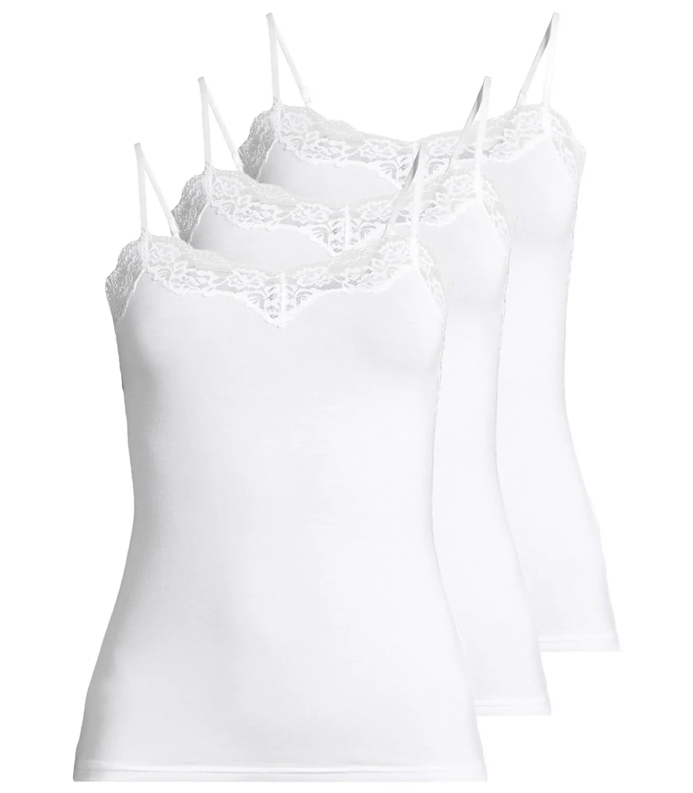 Dit vest met spaghettibandjes van zacht, soepel materiaal biedt maximaal comfort. Het is duurzaam geproduceerd en spaart hulpbronnen. De expressieve kanten randjes met bloemen zijn heel zacht en geven het een romantische look. Met een goede pasvorm is het de perfecte aanvulling voor elke dag met een vleugje elegantie.