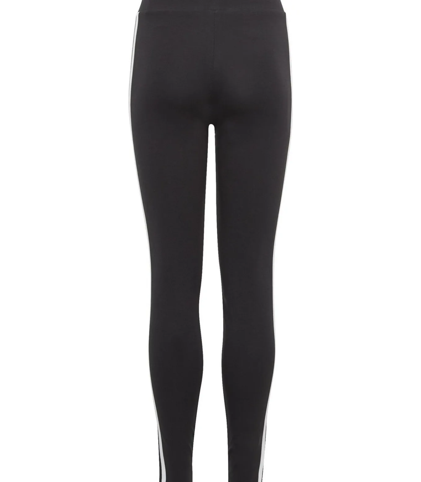 Adidas–merklede leggings in zwart met een percentage van 93% katoen en 7% elastaan. De ontwerpstijl is met een contraststreep en logo. Het stof bevat de Climalite–technologie, waardoor het lichaam optimale ademhaling geeft. De tailleband is elastiek en de leggings zijn voorafgebouwd om perfect te passen.