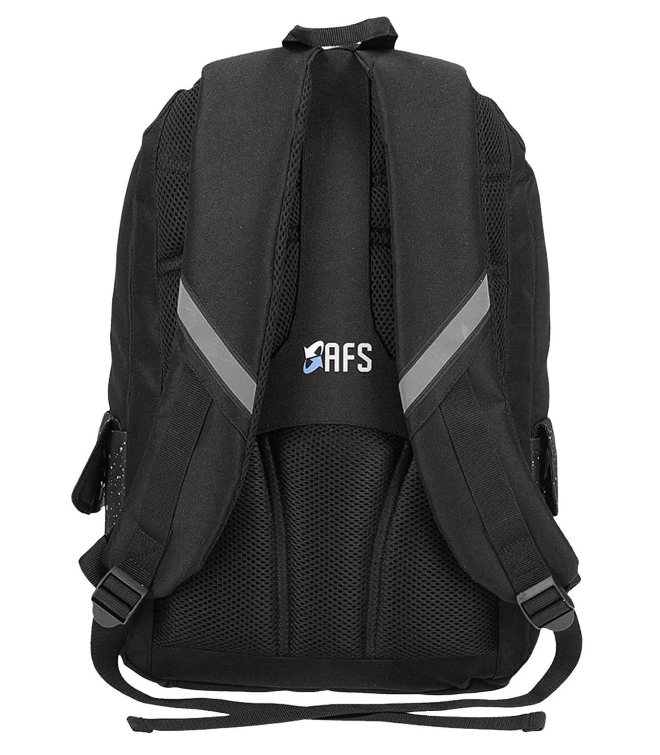 Deze zwarte rugzak met productnummer 4FJAW23ABACM175 is gemaakt van 100% polyester en heeft een schuimveervering van gasschijf. Het is 45 centimeter hoog, 36 centimeter lang en 13 centimeter breed met een capaciteit van 22 liter. De rugzak heeft twee zijzakken en wordt gesloten met drukknopen. Het bevat een voorcompartiment, hoofdcompartiment, laptophoes en rits. Ook beschikt de rugzak over een verstelbare schouderriem, handgreep en is er geventileerd om vocht op te vangen. De stoftechnologie van deze rugzak is Ademend en het ontwerp is glad en gedrukt.