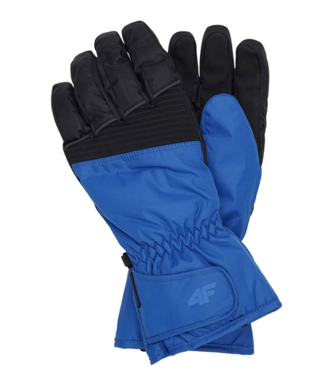 Skihandschoenen 4F, 4FWAW23AFGLM107 – Blauw: Deze premium ski–handgloven van ons merk kenmerken zich door zachte tricot–opvulling en verschillende moderne technologieën voor ademendheid en waterafstotendheid, zoals Ademend, Vochtafvoerend, NeoDry en Thinsulate. Ze zijn verder voorzien van reflecterende details, een contrasteren ontwerp met het merklogo, een anti–slip handpalm en een veilige bevestiging met spijker, elastiek en riem met drukknopen. Het exterieur bestaat uit polyester, PU (Polyurethaan) en rubber voor maximale stevigheid en weerbestendigheid.