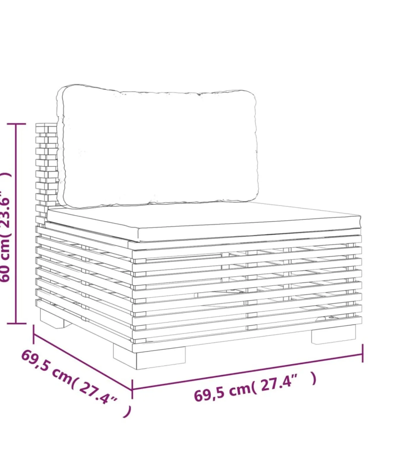 Afmetingen middenbank: 69,5 x 69,5 x 60 cm (B x D x H)