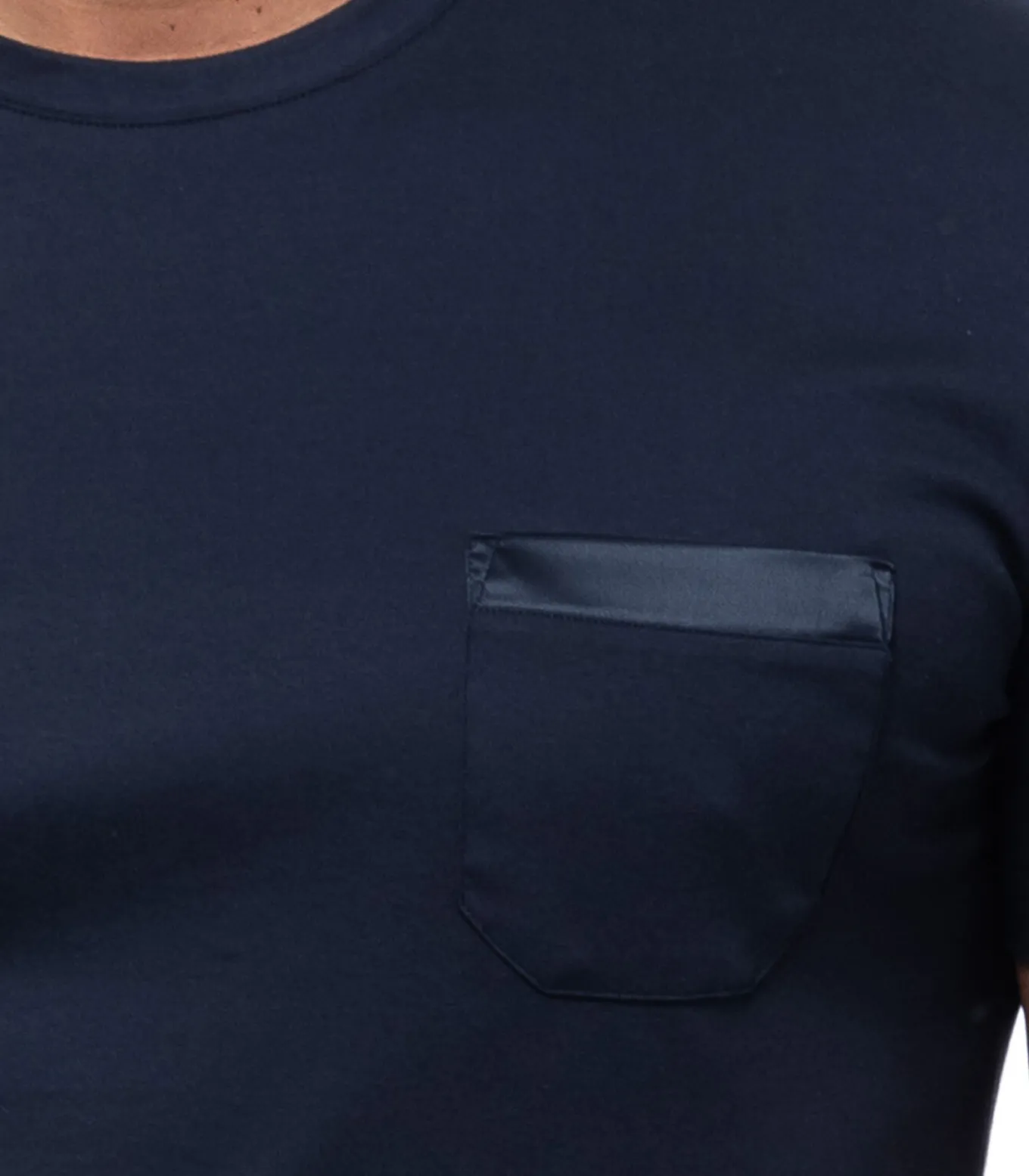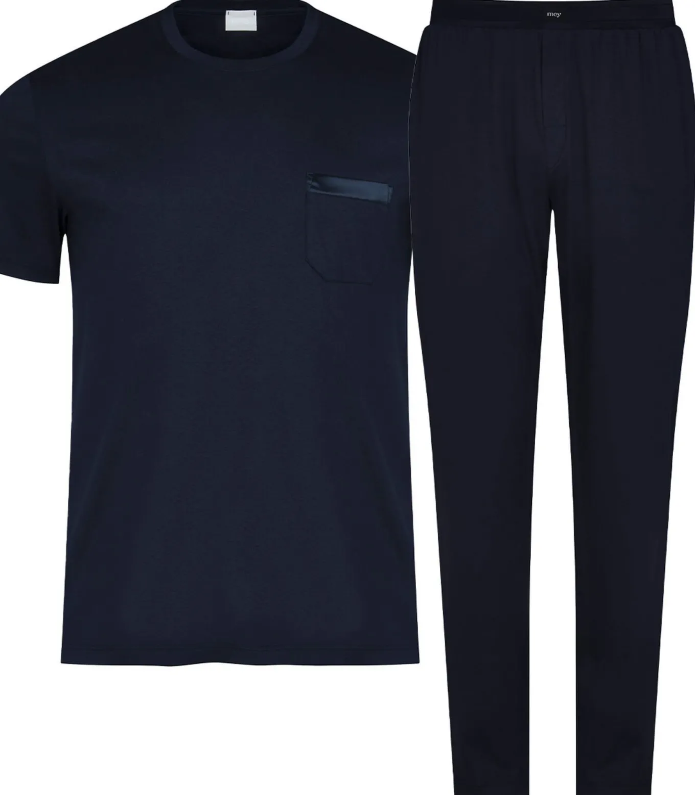 De herenpyjama uit de Aarhus–serie is perfect voor ontspannen nachten en combineert een comfortabel T–shirt met ronde hals en borstzak met een aangenaam zachte pyjamabroek van interlockkatoen. De elastische geweven tailleband, steekzakken en losse pasvorm zorgen voor allround comfort – ideaal om te ontspannen en te slapen.
