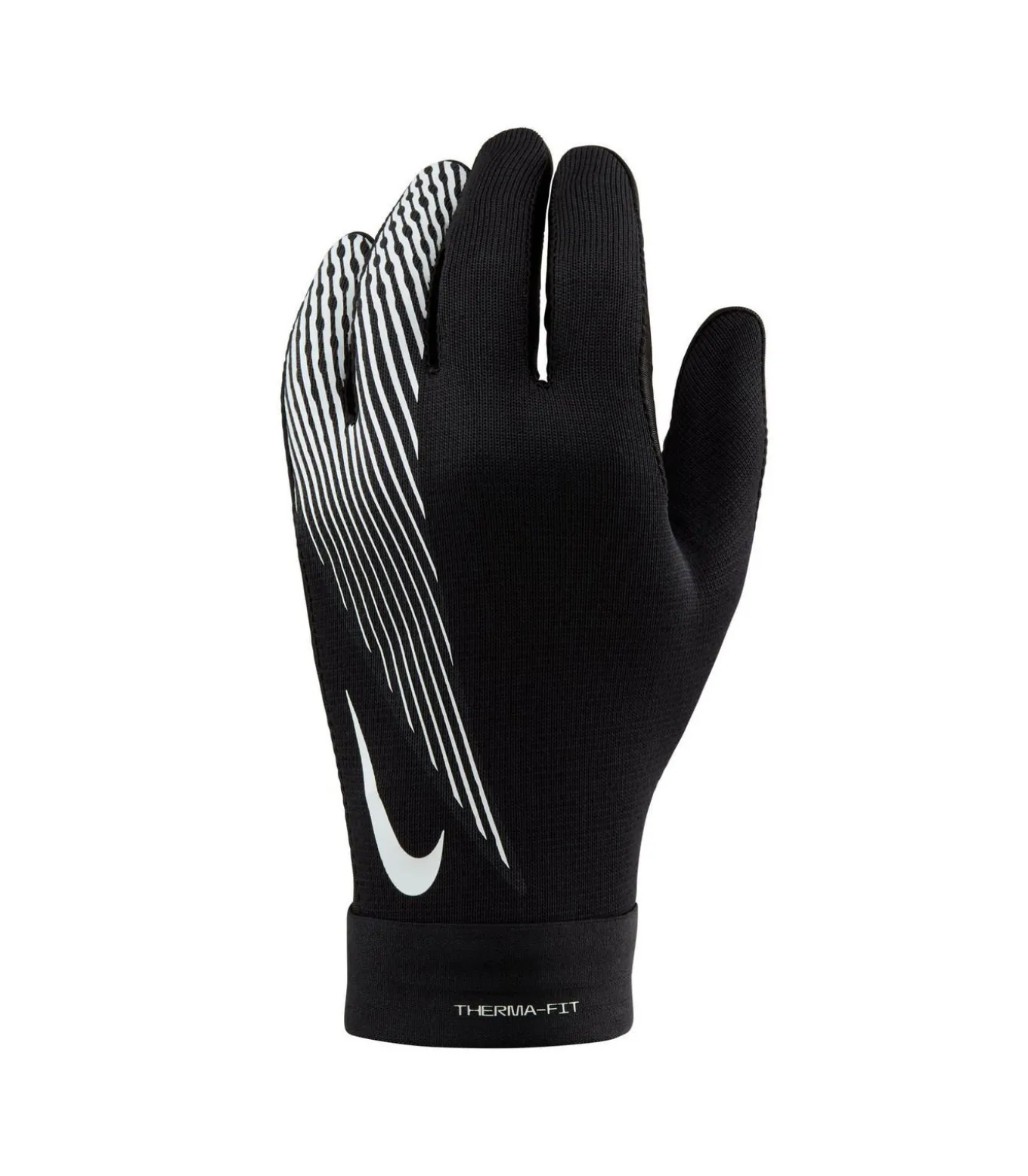 Nike Academy zwart handschoen gemaakt van nylon en polyester met een kordelige manchet. Het ontwerp van deze handschoen bevat het gedrukte Nike logo.