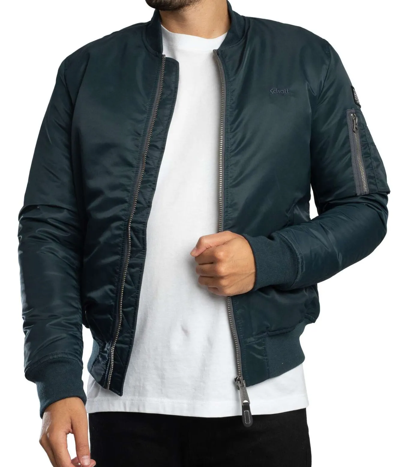 Schott introduceert het Airforcers Bomberjack in marineblauw, een veelzijdige must–have voor buitenkleding, geïnspireerd op de klassieke luchtvaartstijl. Merkknopen en borduursel op de borst tonen Schotts aandacht voor kenmerkende details, terwijl de zakken met knoopjes zorgen voor gemakkelijke opbergmogelijkheden. De elastische manchetten en zoom van het jack zorgen voor een nauwsluitende pasvorm en houden de kou buiten. Een ritsvak op de mouw biedt extra functionaliteit, aangevuld met een binnenzak met knoop. De Schott Airforcers Bomberjack, die erfgoed en moderniteit perfect combineert, belichaamt het vakmanschap en de robuuste stijl van het merk.