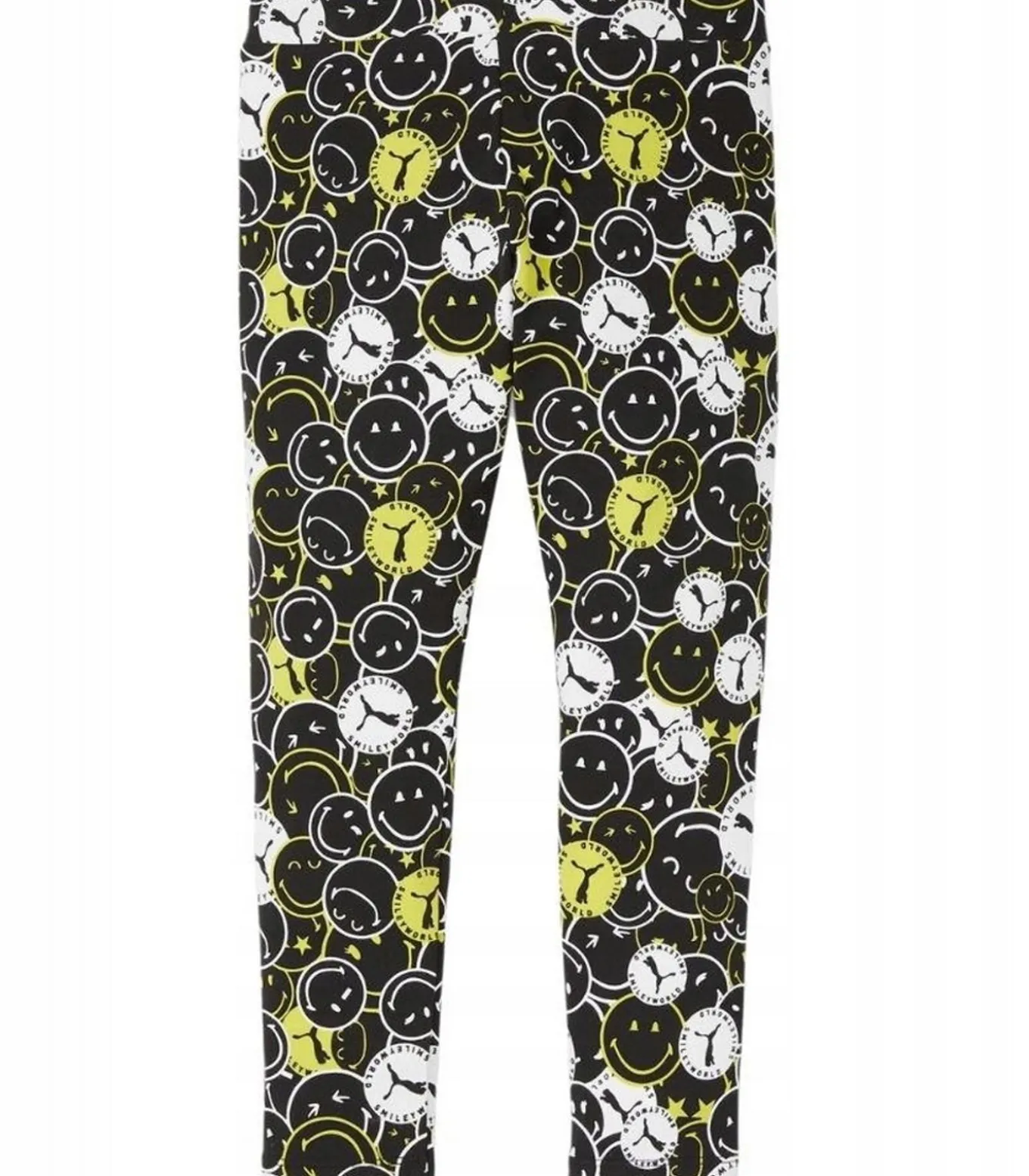 Puma–merk leggings met all–over print in zwart. Deze leggings bestaan uit 94% katoen en 6% elastaan. Het ontwerp van deze leggings is ontworpen met een all–over print, logo en smiley. Deze stoffe zijn zacht en soepel voor comfortabel dragen. Het wijzige gordel aan de zijkant van de leggings is elastisch om perfect te passen bij je lichaam.