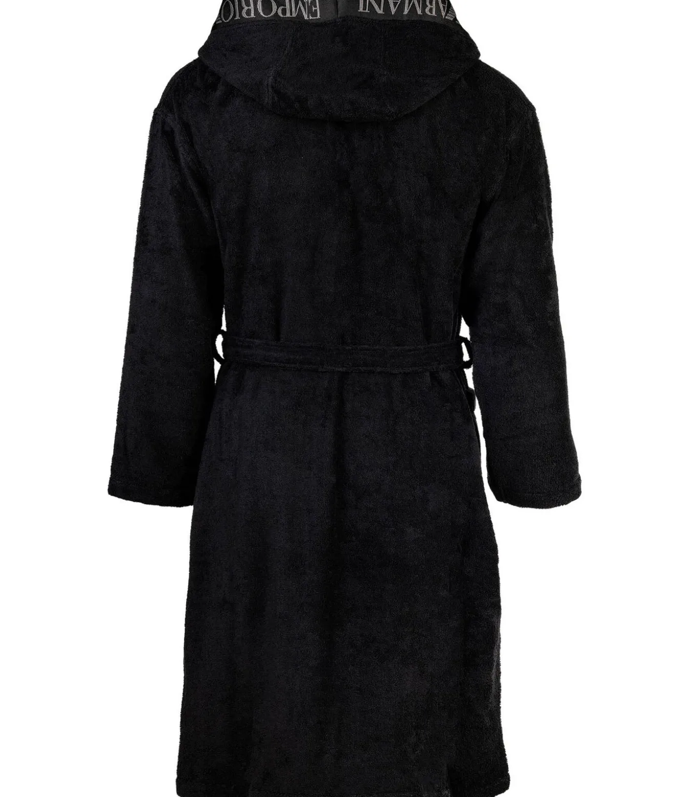 Badjas met capuchon voor heren van het merk EMPORIO ARMANI. Van katoenen badstof, met logoband, opgezette zakken en ceintuur. Hoogwaardige stof.