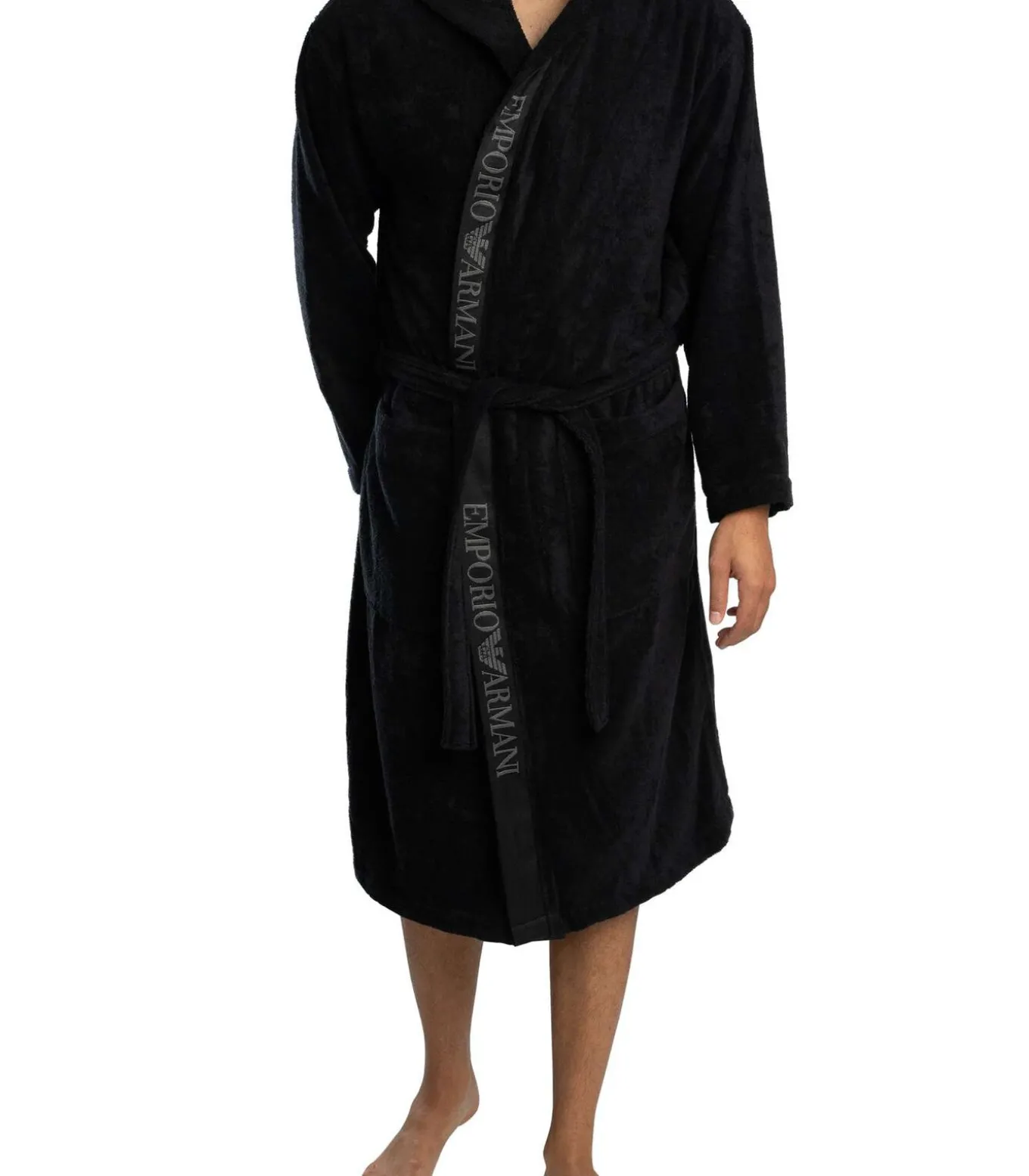 Emporio Armani presenteert de Terrycloth badjas met logobies in zwart, een combinatie van luxe en functionaliteit. Hij is voorzien van een opvallende logobies als kenmerkend detail, twee open zakken aan de voorkant voor het eenvoudig opbergen van essentiële spullen en een strikceintuur voor een persoonlijke pasvorm. Gemaakt van zachte badstof, is hij zeer absorberend en comfortabel, voor comfort de hele dag. Deze badjas van Emporio Armani is een tijdloos basisstuk dat een traditioneel merk combineert met dagelijkse functionaliteit.
