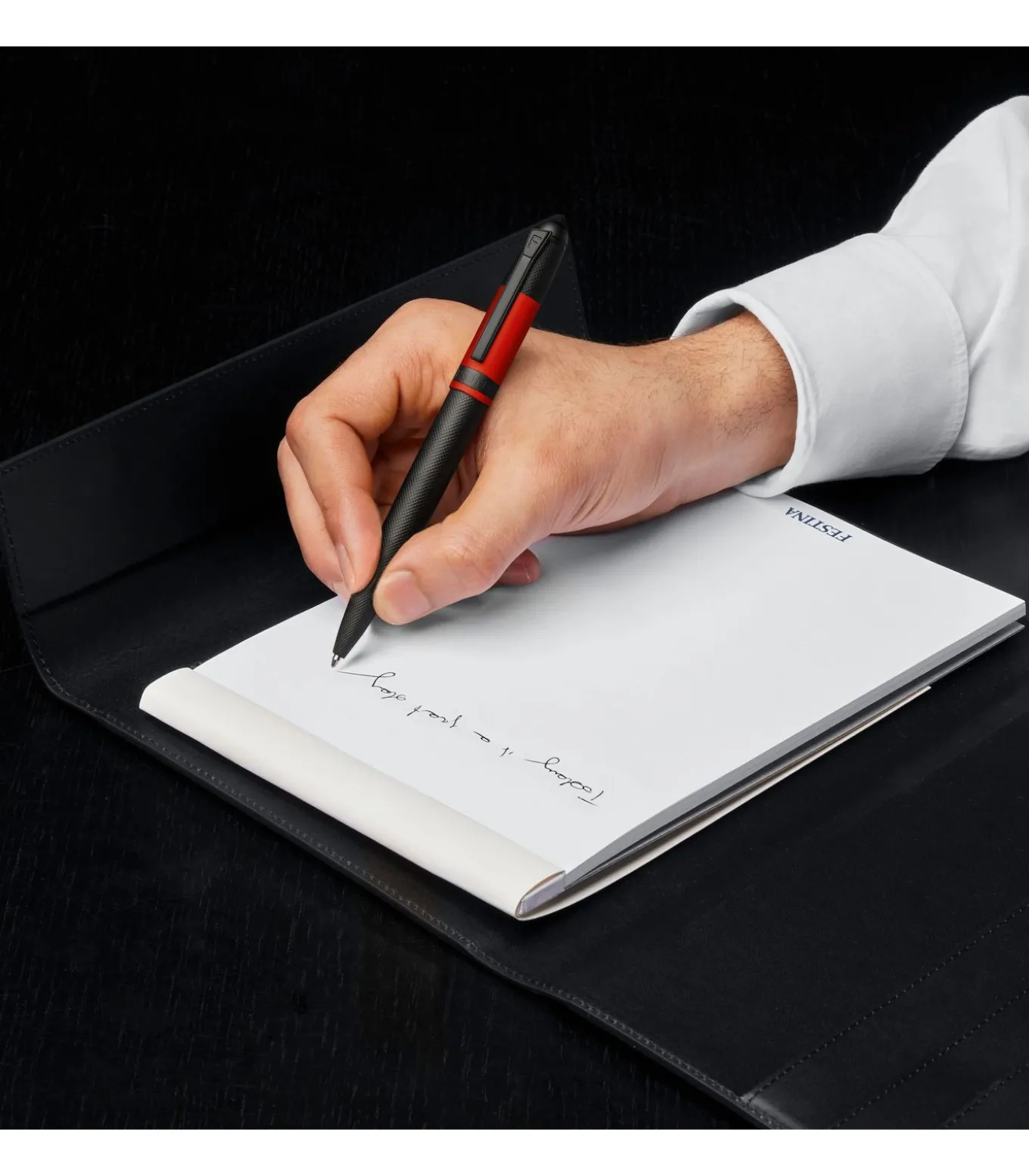 Festina’s best verkopende Classicals pen is opnieuw uitgevonden met een nieuwe capsule editie: een innovatieve afwerking die de pen een eigentijds & luxueus randje geeft. Het oppervlak is gegraveerd en verguld in mat zwart in contrast met de rubberachtige matte lak van de dop, voor een resoluut modern & grafisch resultaat. Deze kleurblokversie is verkrijgbaar in geel, oranje, rood, blauw en groen. Dimensions: DIA.13/H.140 mm, Material: Brass,Rubber,Black plating