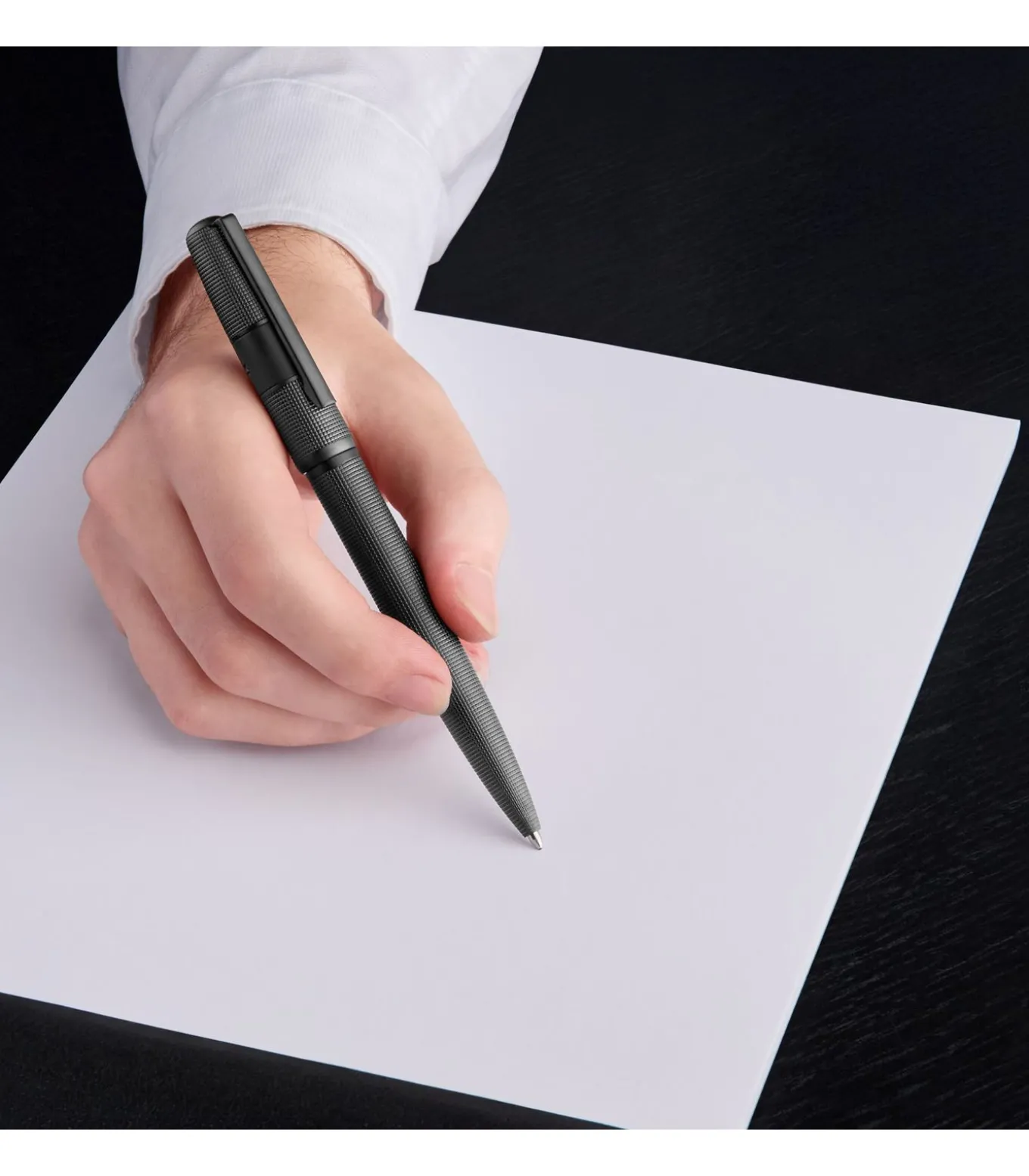 Introducing the HUGO BOSS Ballpoint Pen Grid Black—a perfect blend of elegance and functionality. Crafted from premium brass with sleek black plating, this pen boasts a sophisticated design that fits seamlessly into any professional or personal setting. Weighing just 38 grams and measuring 140 mm in length, it feels comfortable in hand for everyday use. The bold blue ink glides effortlessly onto paper, making notes and signatures a pleasure. Suitable for all, this striking pen is an essential addition to your writing arsenal—ideal for gifts or personal indulgence. Elevate your writing experience with HUGO BOSS! Dimensions: DIA.15.9/H.140 mm, Material: Brass,Black plating