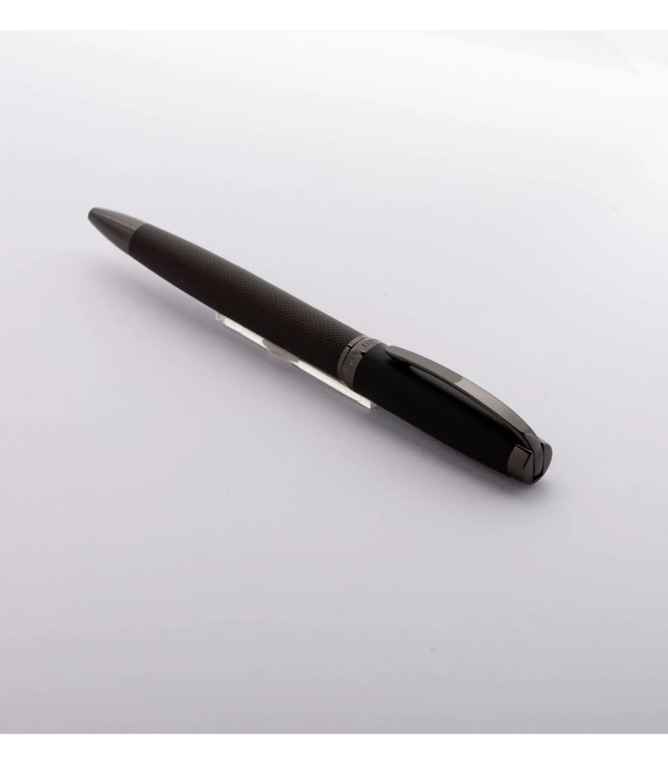 Van een zachte matzwarte gelakte dop tot een matzwarte diamantgeslepen gegraveerde body en versierd met glanzende gunmetal garnituren, de Myth balpen is vol contrast en geeft het een luxueuze en moderne uitstraling. Dimensions: DIA.13/H.141 mm, Material: Brass,Lacquer,Gun plating