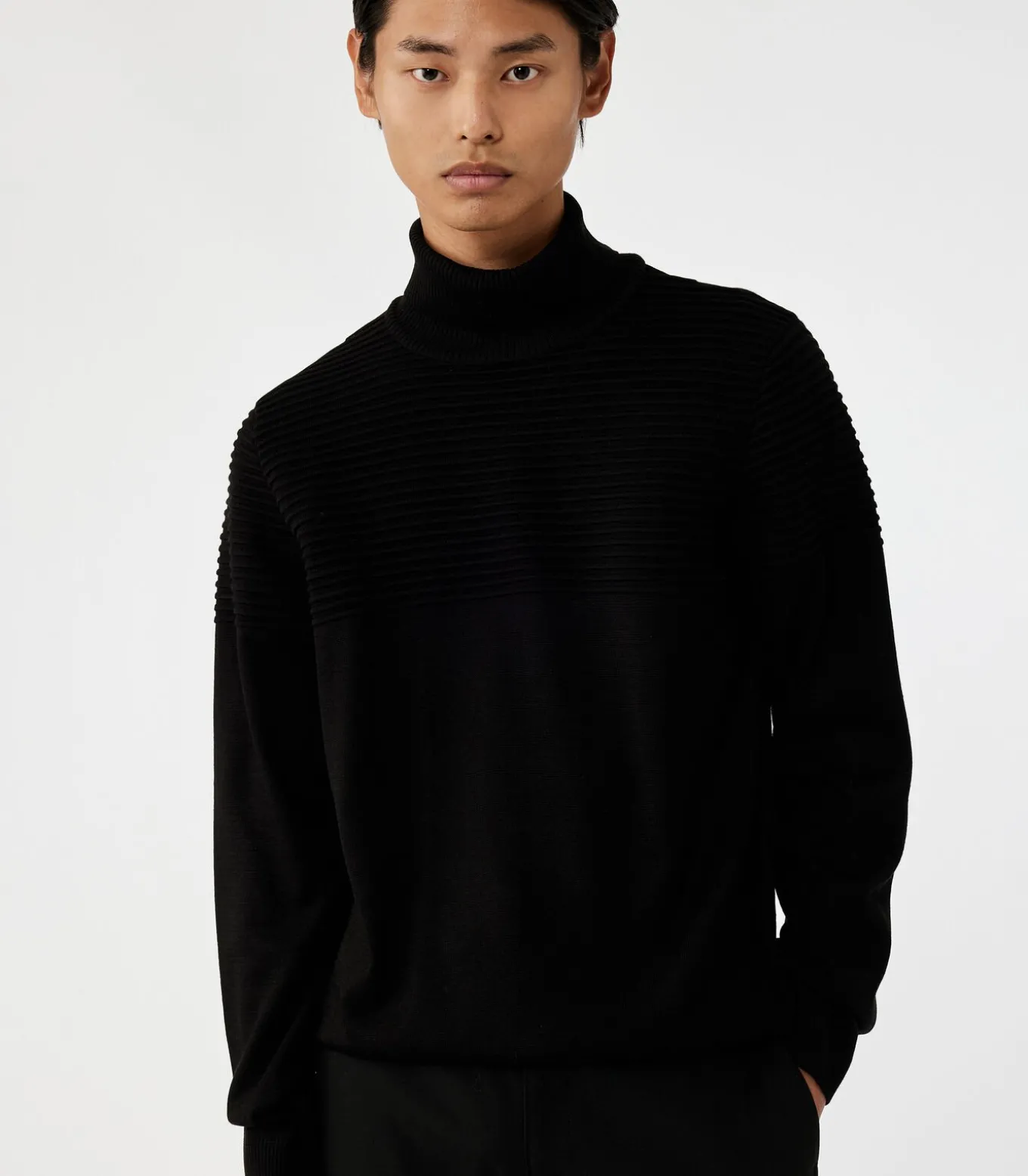 Basic gebreide trui met lange mouwen en col.
