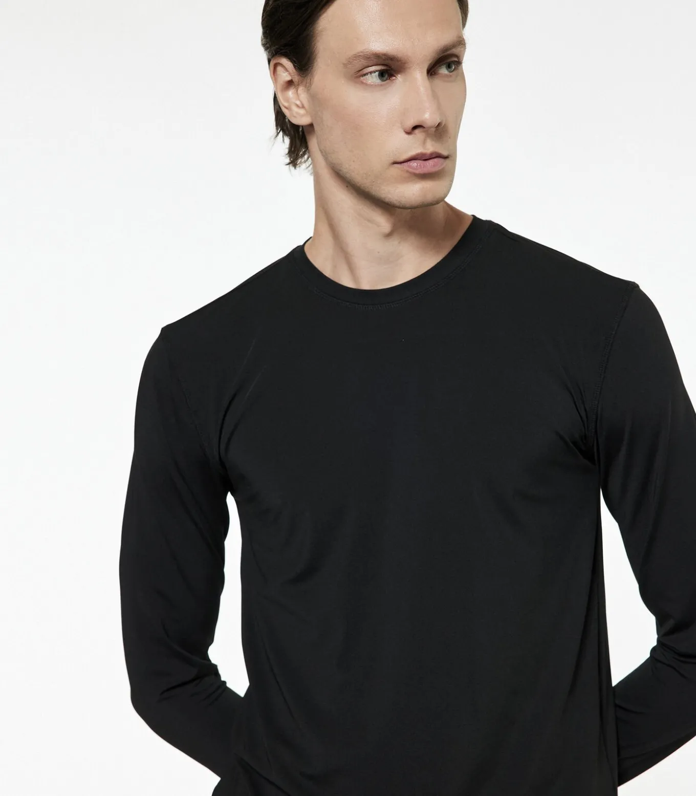 Basic sport–T–shirt met ronde hals, lange mouwen, relaxte pasvorm en naaddetails.