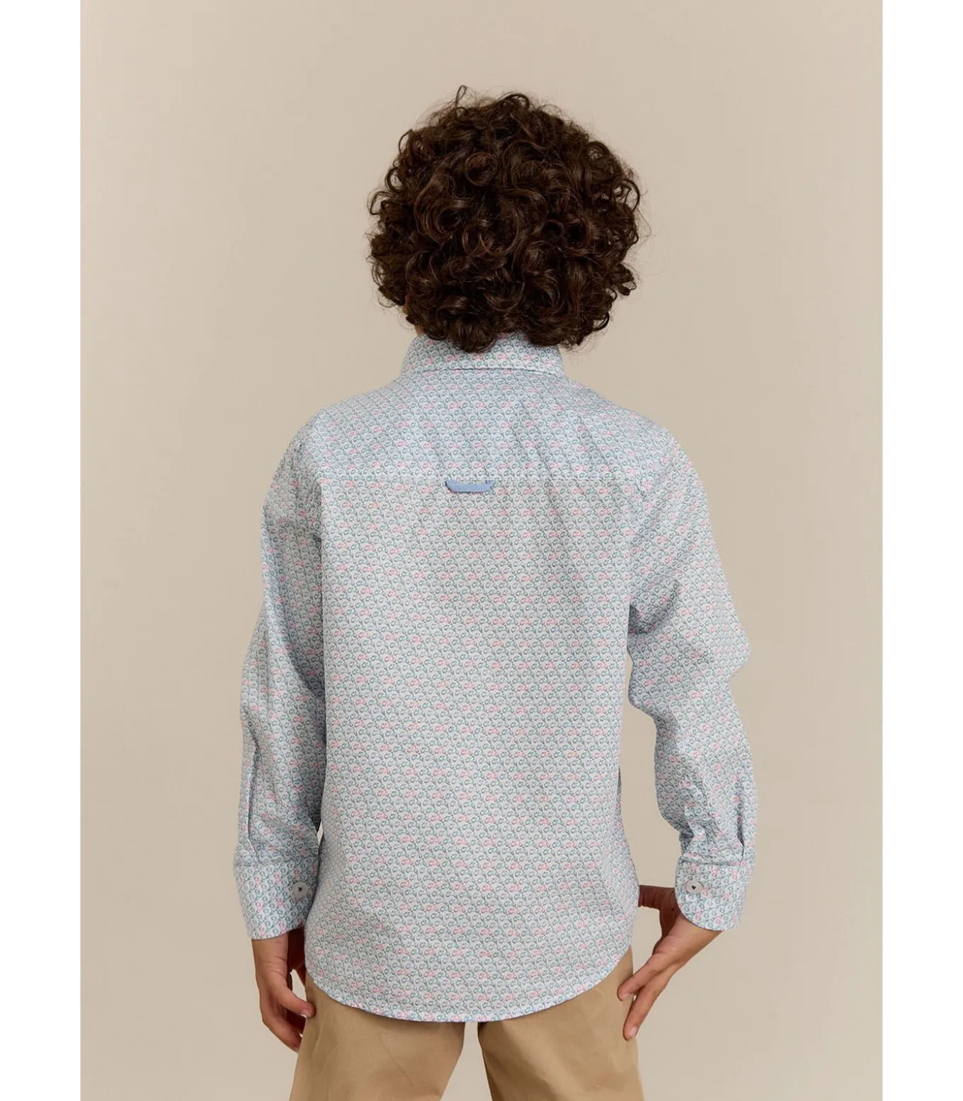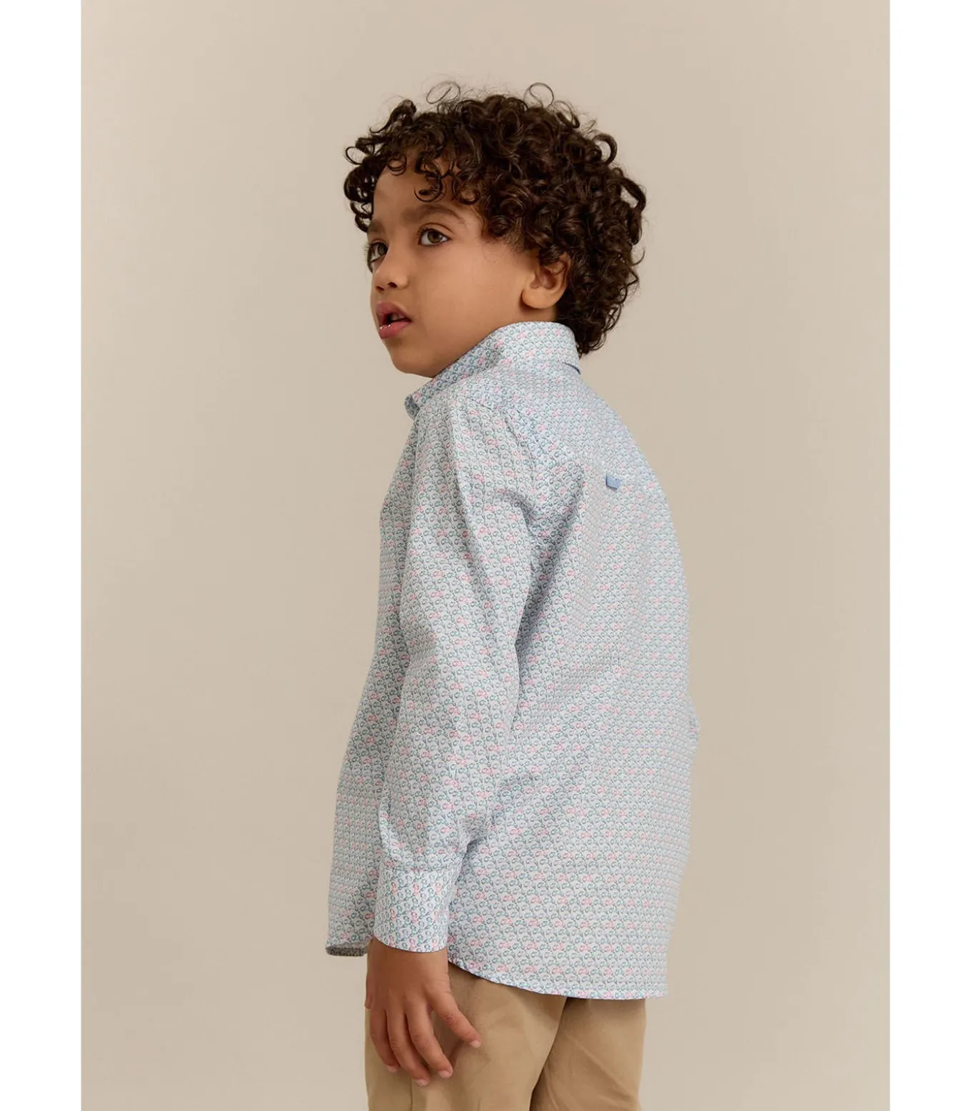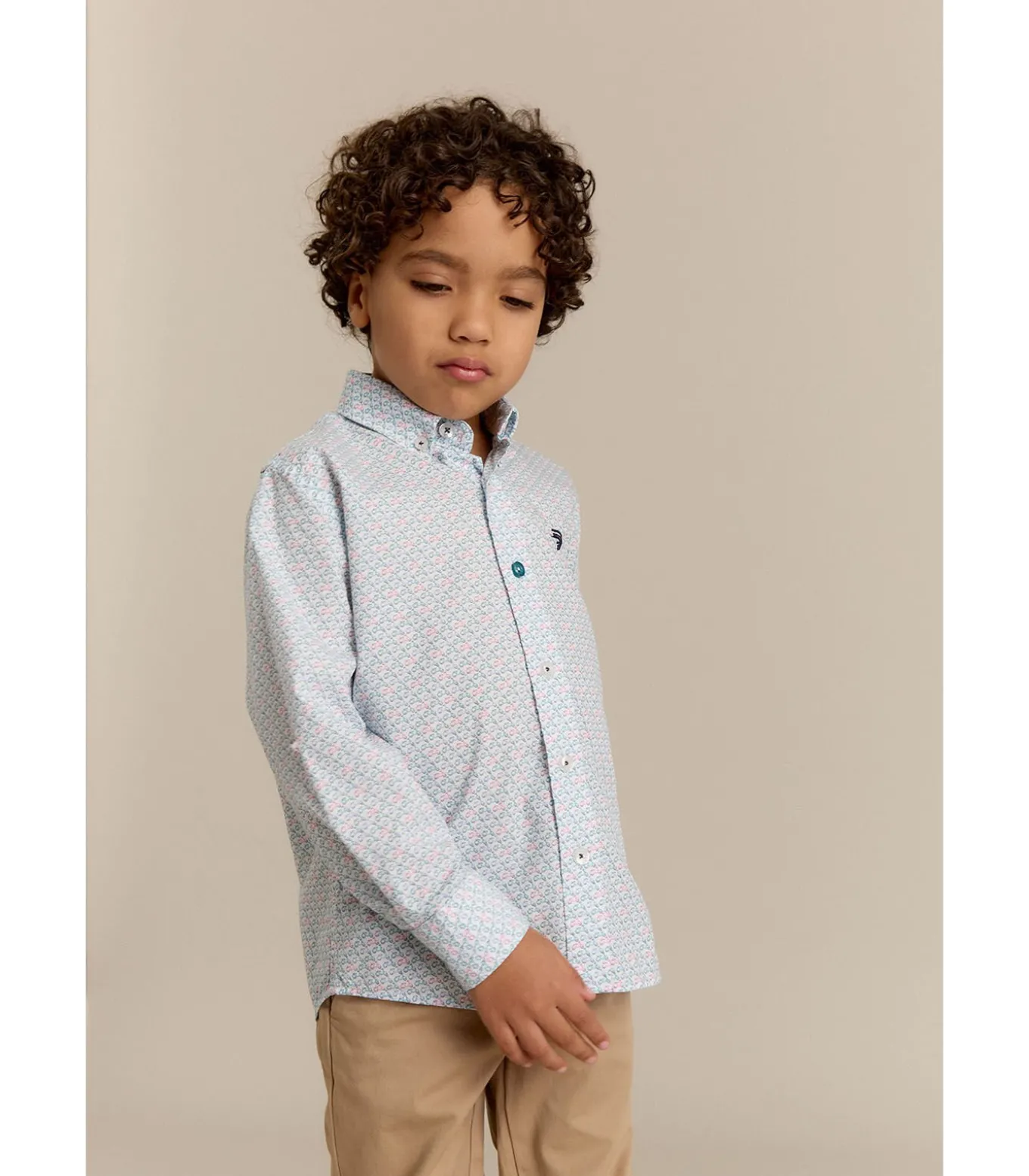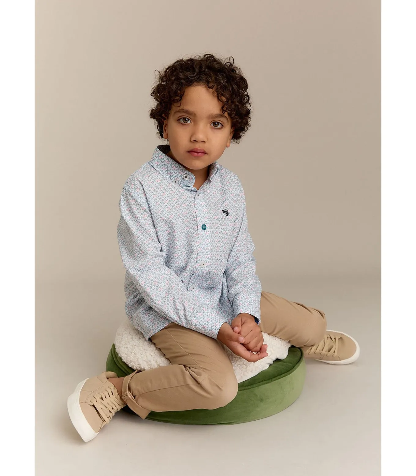 Geef je kleine jongen een elegante en moderne look met dit witte overhemd met patroon uit de Como–collectie. Dit overhemd is gemaakt van 100% katoen en biedt een ongeëvenaard comfort dankzij de rechte snit en de lange mouwen. Het originele gedrukte patroon en het geborduurde J&JOY–logo op de borst voegen een uniek vleugje stijl toe aan dit tijdloze stuk. Zorgvuldige details zoals de klassieke kraag, knooppunten, klassieke knoopsluiting en afgeronde hoekmanchetten tonen het vakmanschap. Daarnaast zorgen de borstzak, het geprinte patroon aan de binnenkant van de kraag en manchetten, evenals het trekkoord voor een verfijnde afwerking van dit overhemd. Bestel nu en geef uw kind kwaliteitskleding die opvalt.