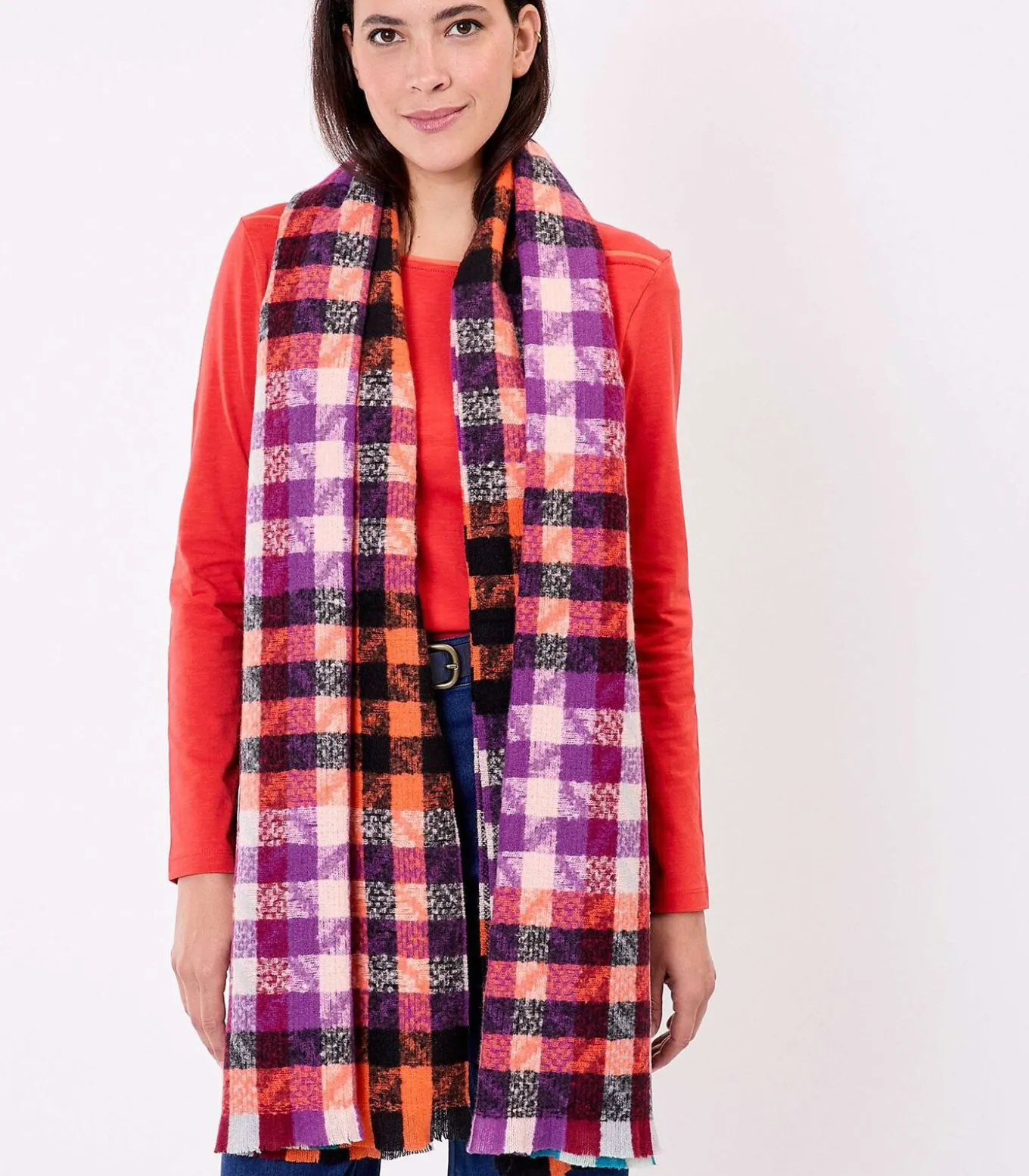 Zachte en kleurrijke sjaal met vernieuwd pied–de–poule motief, die een grafische en lichte touch aan uw winteroutfits geeft. Het royale rechthoekige formaat maakt veelzijdig dragen mogelijk: rond de hals, over de schouders als sjaal of op een casual manier geknoopt. Productdetails: rechthoekige bedrukte sjaal, afmetingen: 180 x 65 cm.