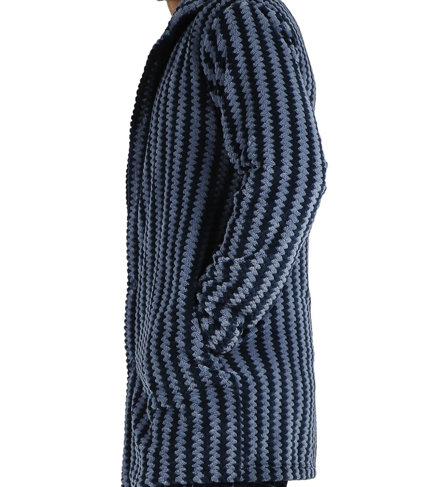 Zacht en comfortabel Corel fleece binnenjack, ideaal om te dragen in de winter op koelere avonden. Het heeft lange mouwen en een hoge kraag, steekzakken, en sluit aan de voorzijde met knopen. Het biedt u een originele stijl dankzij het zigzagpatroon. Zeer aangenaam en comfortabel om te dragen.