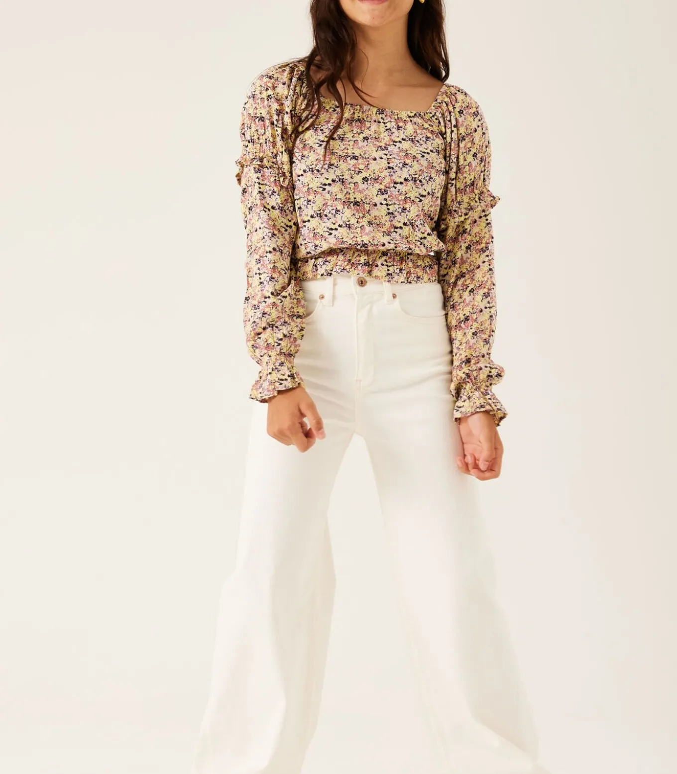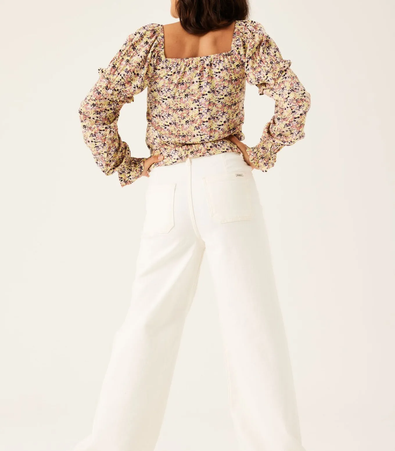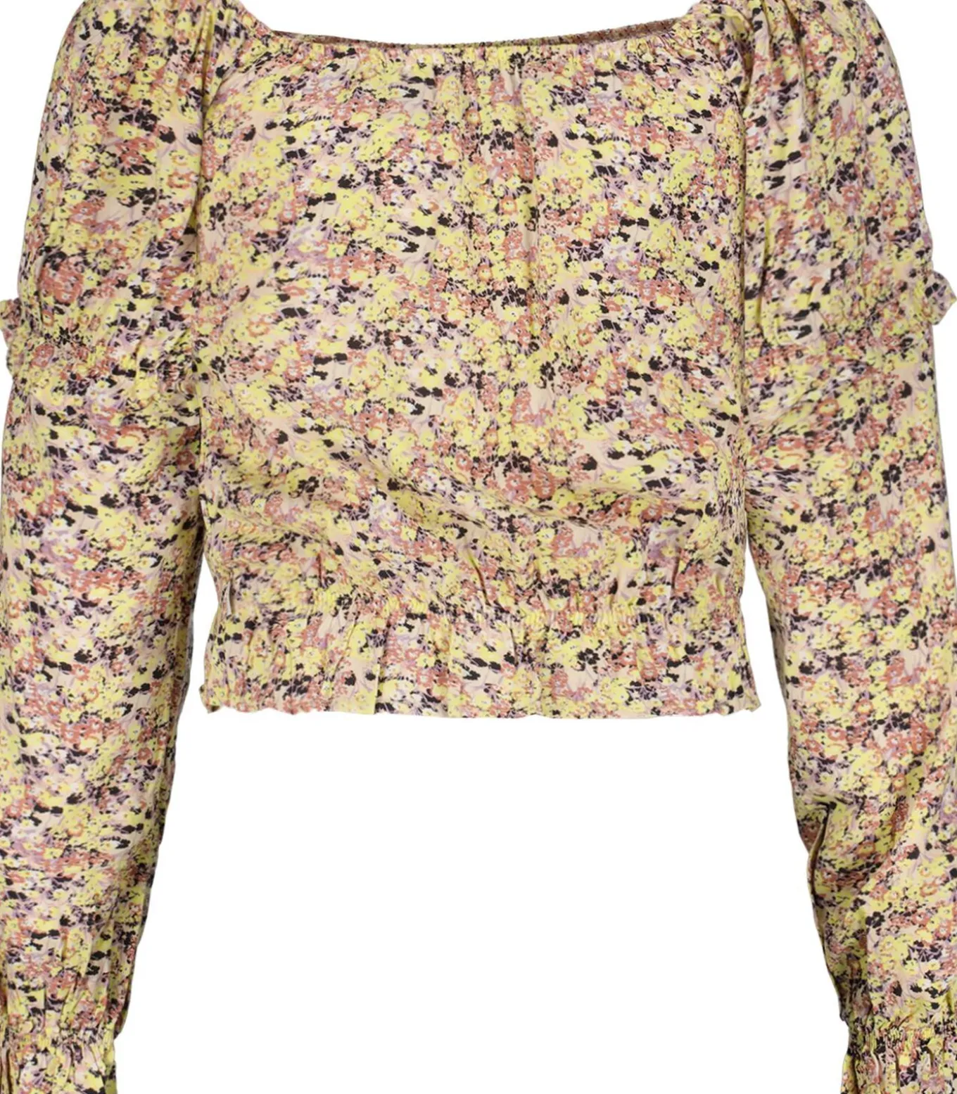 Longsleeve met allover print. Deze longsleeve heeft lange ballonmouwen, een boot hals en een regular fit. Dit item is gemaakt van 100% viscose.