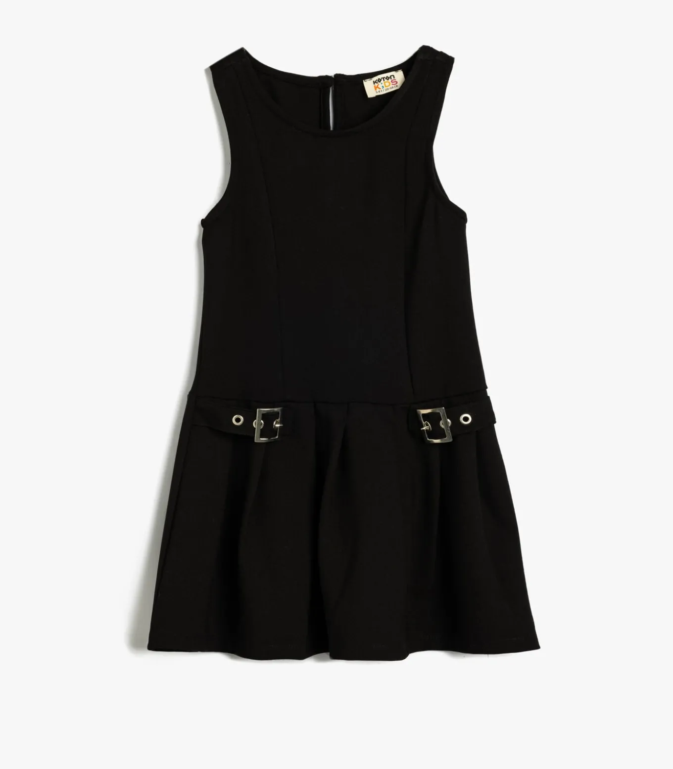 Met metalen accessoires Normaal Gilet–jurk zonder zak Boven knielengte Mouwloos Mouwloos Ronde kraag Jurk