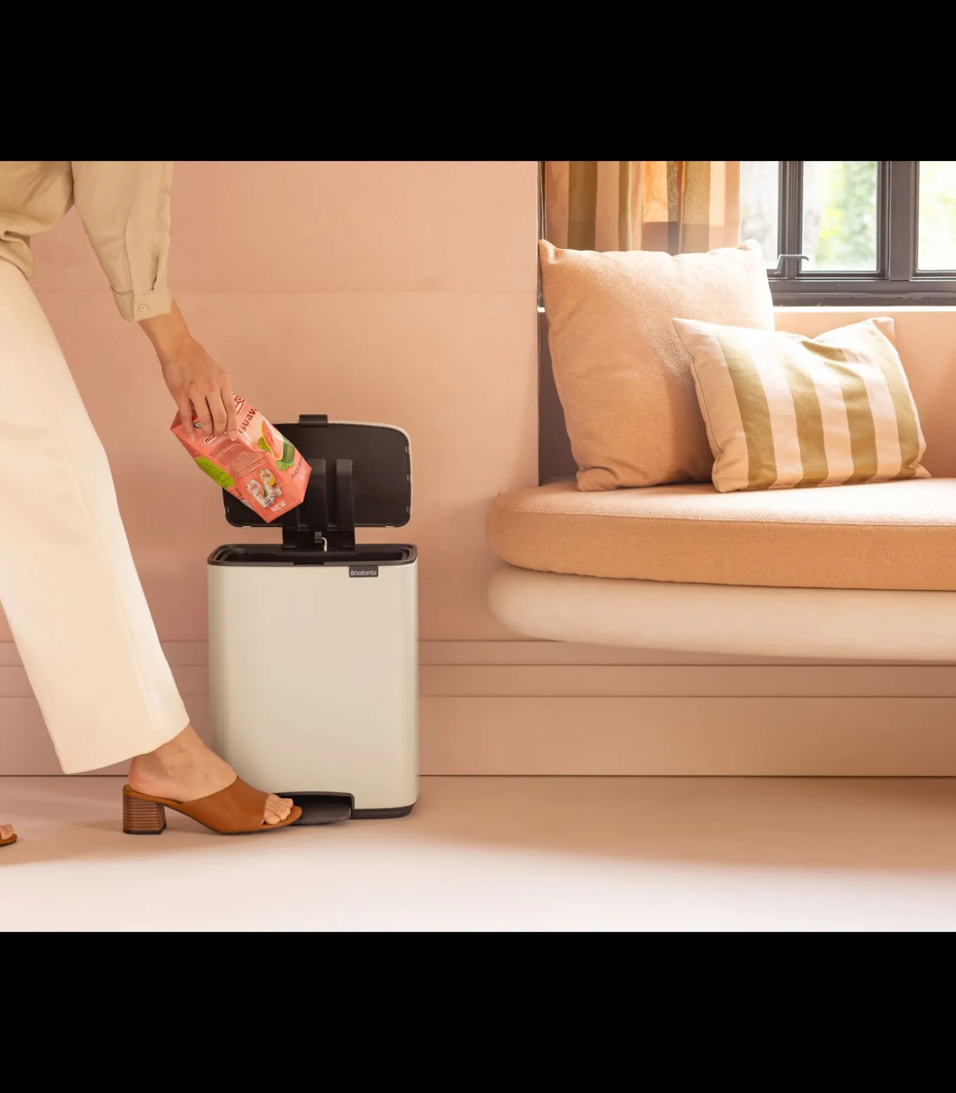 Brabantia Bo Pedaalemmer, 12 liter, stil sluitend, kunststof binnenemmer – Soft Beige