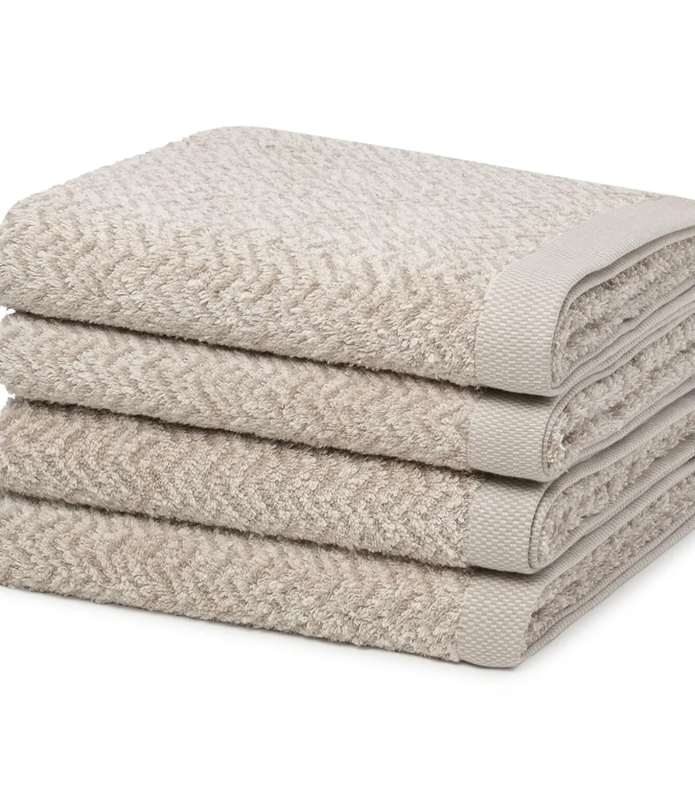 De Brooklyn–serie roept herinneringen op aan het Dandy–tijdperk en is geïnspireerd op de patronen van traditionele pakstoffen – glencheck en visgraat. In combinatie met het gekroesde bouclégaren met kleine knopen en lussen wordt het een tijdloze en elegante collectie die ook de huidige tijdgeest weerspiegelt. De moderne materiaalmix van katoen, viscose en linnen maakt de serie huidvriendelijk, slijtvast, zacht, onderhoudsvriendelijk en fijn glanzend. Het hoogwaardige materiaal is bovendien bijzonder duurzaam. Set bestaat uit: 4 x handdoek (50 x 100cm)
