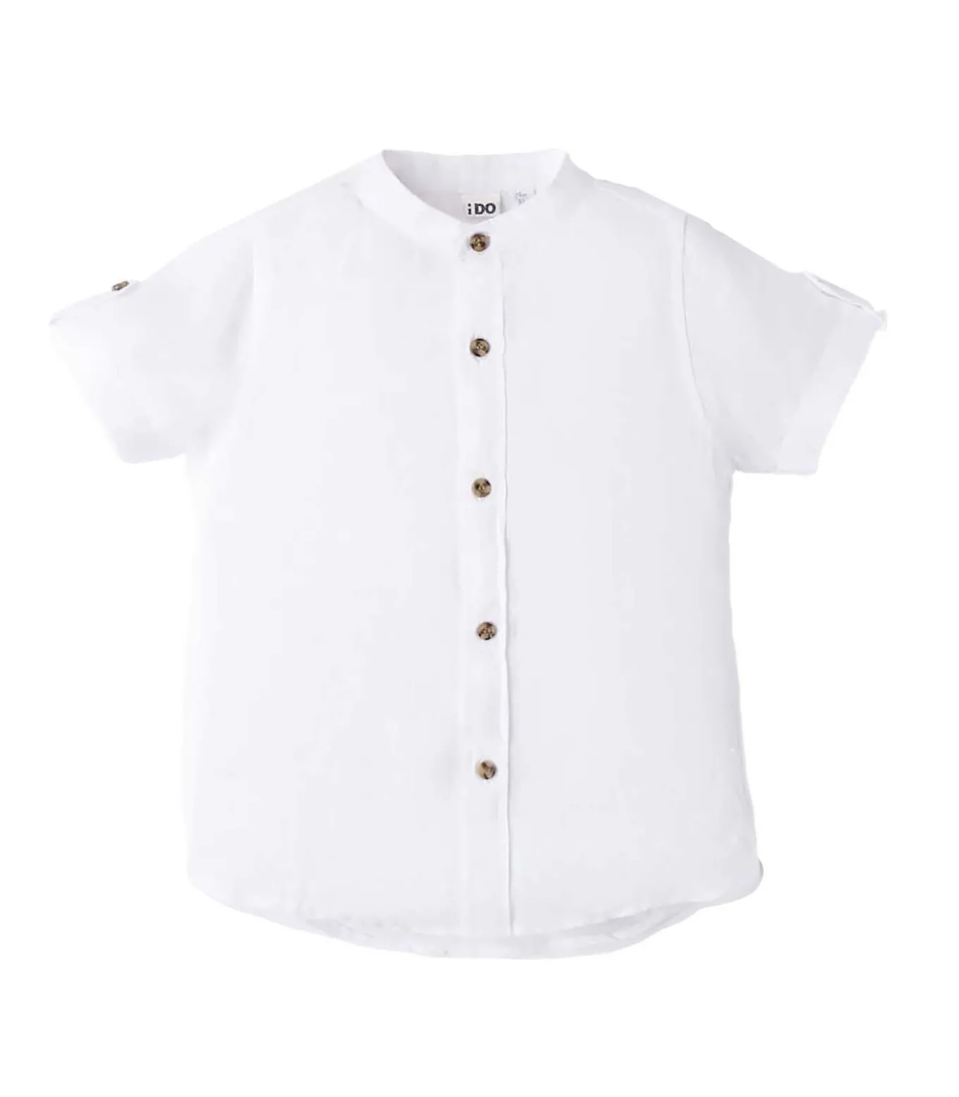 Kleur: Wit 0113 Specificaties: Shirt gemaakt van linnen, mandarijn kraag en korte mouwen. Klassieke knoopsluiting en afgeronde zoom onderaan. Pasvorm: Normaal