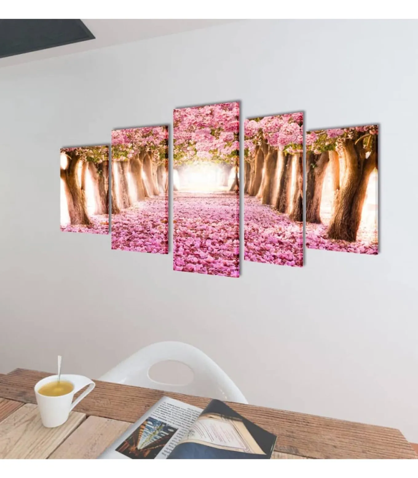Afmetingen van elk schilderij: 40 x 100 cm (een), 40 x 80 cm (twee), 40 x 60 cm (twee)