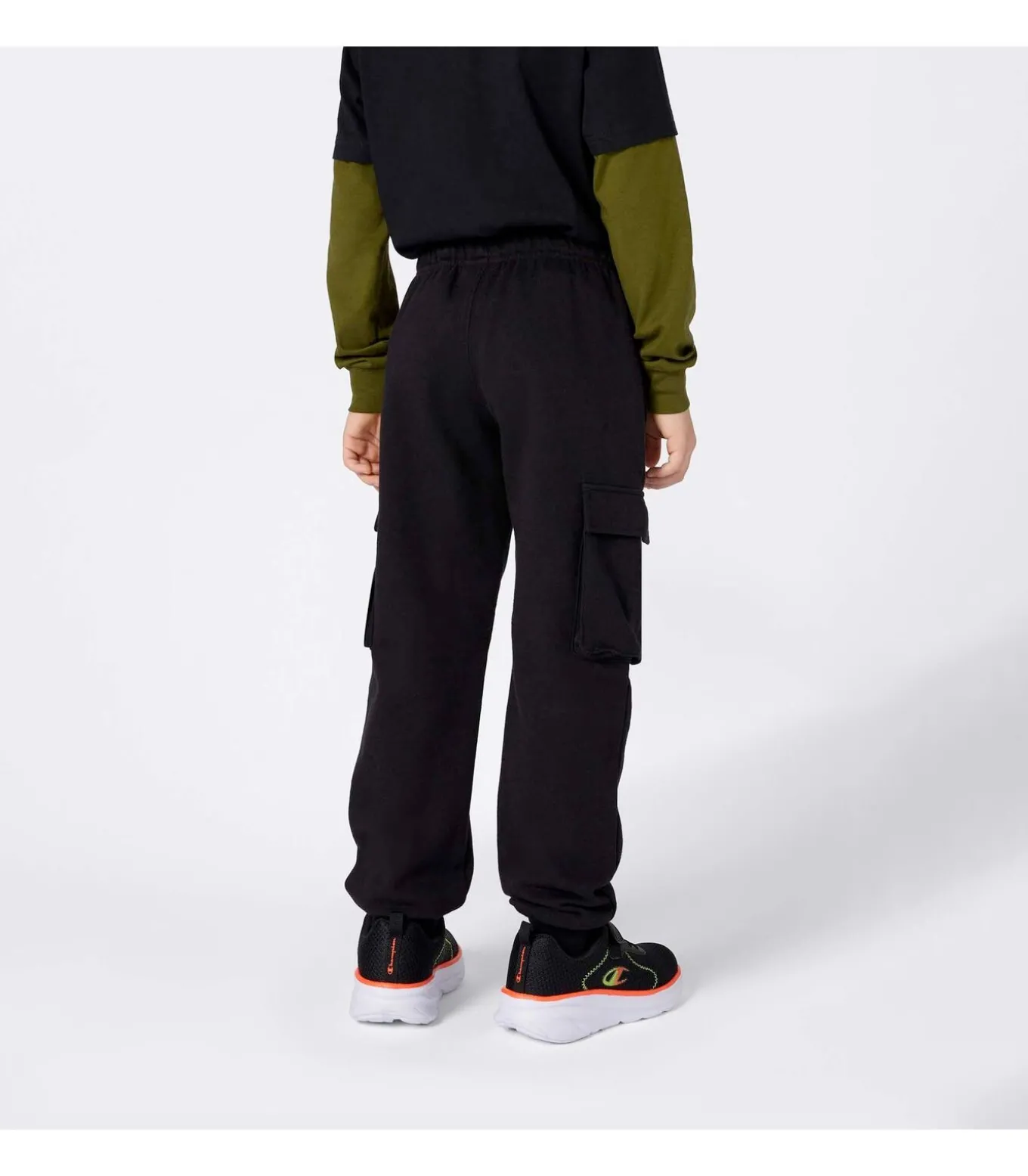 Kleur: Zwart Samenstelling: 73% katoen, 27% polyester Lengte: Lang Pasvorm: Relaxed Sluiting: Trekkoord in de taille Details: Zachte fleece cargobroek met opgestikte zijzakken, verstelbare elastische tailleband en klein geborduurd logo op de pijp. Enkelboorden voor een stevige pasvorm Gebruik: Ideaal voor school, buitenactiviteiten en vrije tijd, combineert functionaliteit met een sportieve stijl