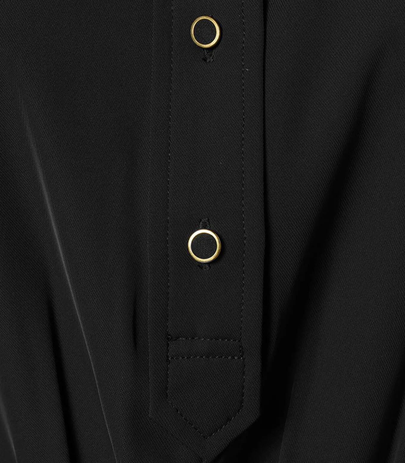 De zwarte Auburn jurk is een elegante klassieker met een eigentijdse twist, ideaal voor zowel formele als feestelijke momenten. De getailleerde snit volgt subtiel de vrouwelijke vormen, terwijl het zwierige rokdeel zorgt voor een soepele, vrouwelijke beweging bij elke stap. De jurk heeft een opstaand boordje met een verfijnde knoopsluiting aan de voorzijde, wat zorgt voor een chique uitstraling met een moderne touch. Dankzij het strikkoord in de taille kun je het silhouet naar wens accentueren, zodat de jurk altijd mooi aansluit. De lengte boven de knie maakt de jurk geschikt voor uiteenlopende gelegenheden, van een zakelijke werkdag tot een etentje of speciale gelegenheid. De comfortabele stofmix van 95% polyester en 5% elastaan voelt prettig aan op de huid en zorgt voor een verzorgde uitstraling, ondanks de non–stretch kwaliteit. De diepe zwarte kleur maakt dit item een veelzijdige toevoeging aan je garderobe, makkelijk te combineren met hakken, laarzen of sneakers, afhankelijk van je mood en de gelegenheid. De Auburn jurk valt normaal qua maat en sluit daardoor moeiteloos aan bij verschillende lichaamsvormen.