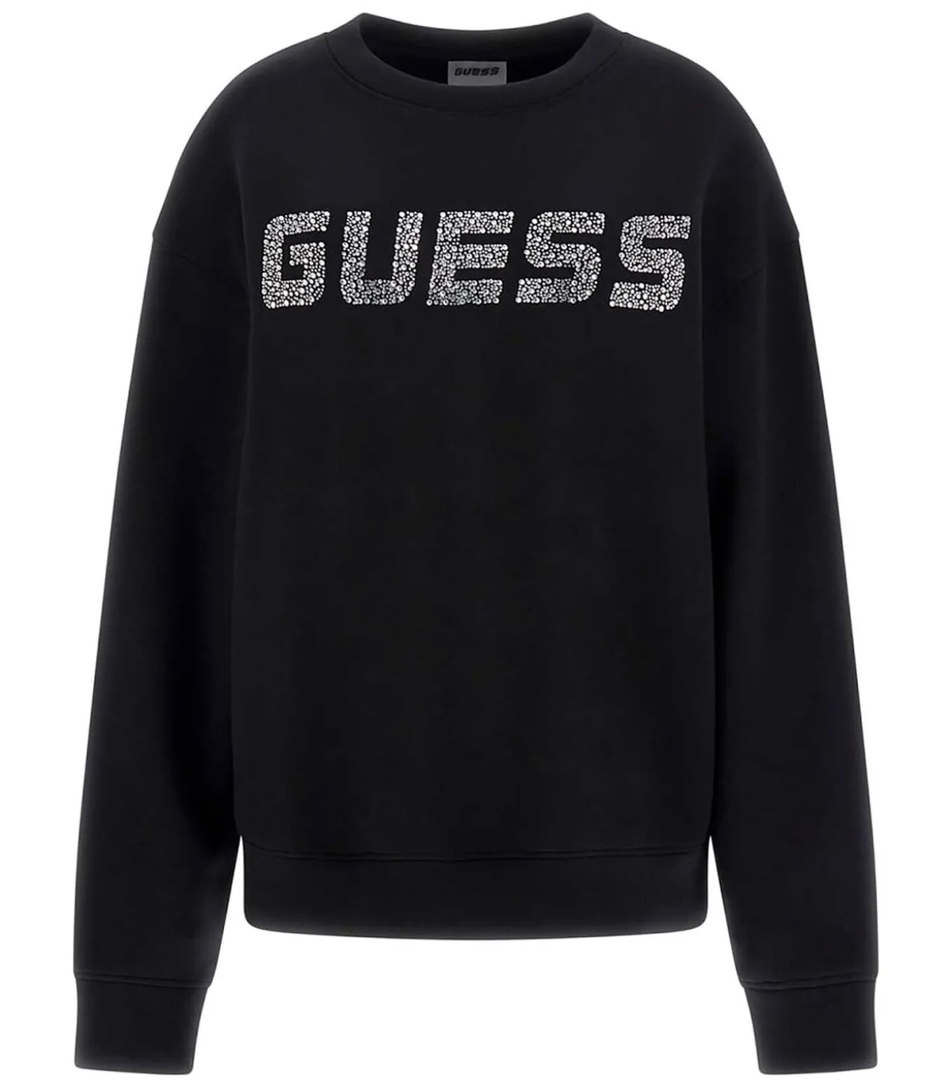 Kleur: Zwart Samenstelling: 77% Viscose/Rayon, 15% Polyamide, 8% Spandex/Elastan Mouwen: Lang Halslijn: Ronde hals Pasvorm: Relaxed Details: Gemaakt van zachte technische scubastof, logo op de voorkant met glinsterende strass–steentjes Duurzaamheid: Gemaakt met LENZING™ ECOVERO™ viscosevezels uit duurzame bronnen, met tot 50% minder uitstoot en waterverbruik Gebruik: Perfect om een vleugje glamour toe te voegen aan je vrije tijd, ideaal om te dragen met een joggingbroek of jeans voor een casual en moderne look.
