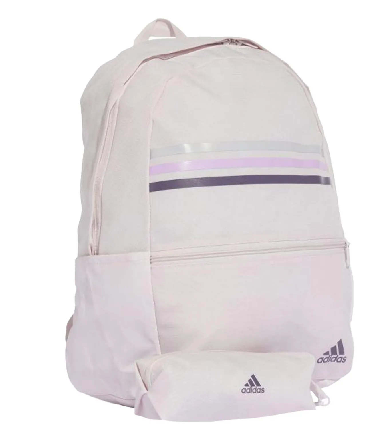 Adidas Classic roze rugzak, gemaakt van synthetisch materiaal. De hoogte is 44cm, de breedte 36cm en de lengte 15cm. Het inhoud heeft een capaciteit van 27.7Liter. De rugzak bevat 1 voorzak met ritssluiting en 1 hoofdcompartiment. Het ontwerp is uitgerust met logo en streepjesdetail. Er is een verstelbare schouderriem en een grijpgreep aanwezig. De rugzak wordt vastgehouden door tweewegrits.