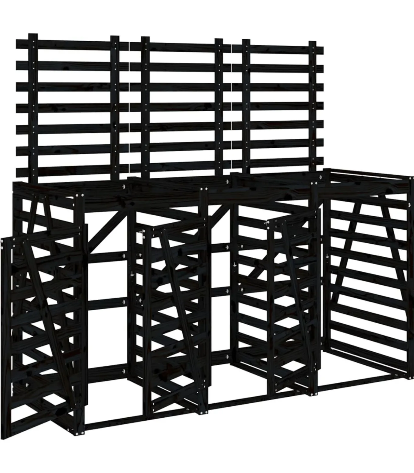 Containerberging drievoudig massief grenenhout zwart
