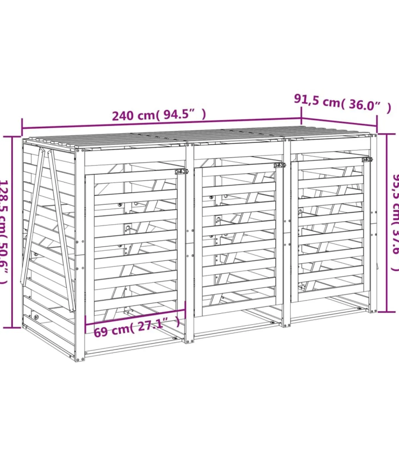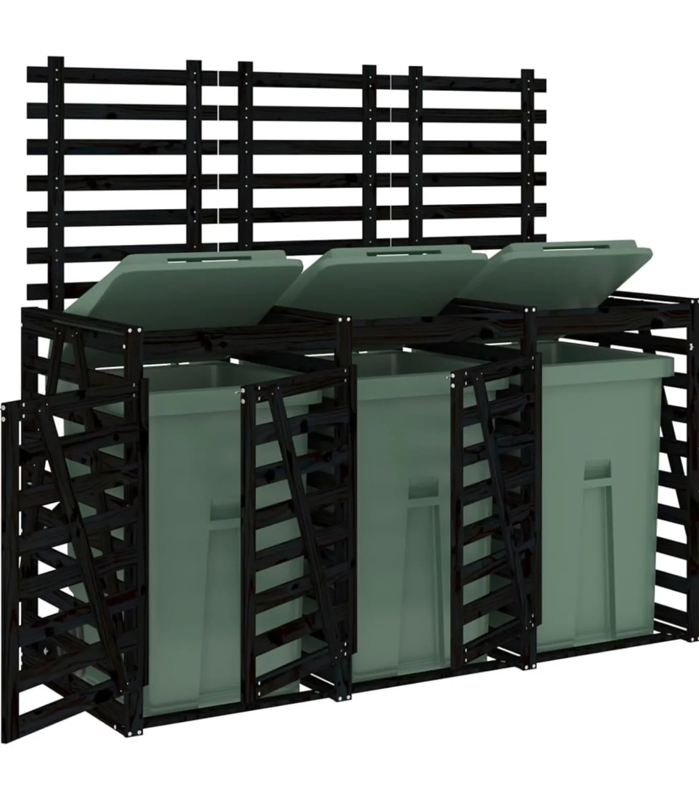 Deze houten driedubbele containerberging houdt de afvalbak in je tuin uit het zicht en zorgt voor een mooie en nette omgeving.