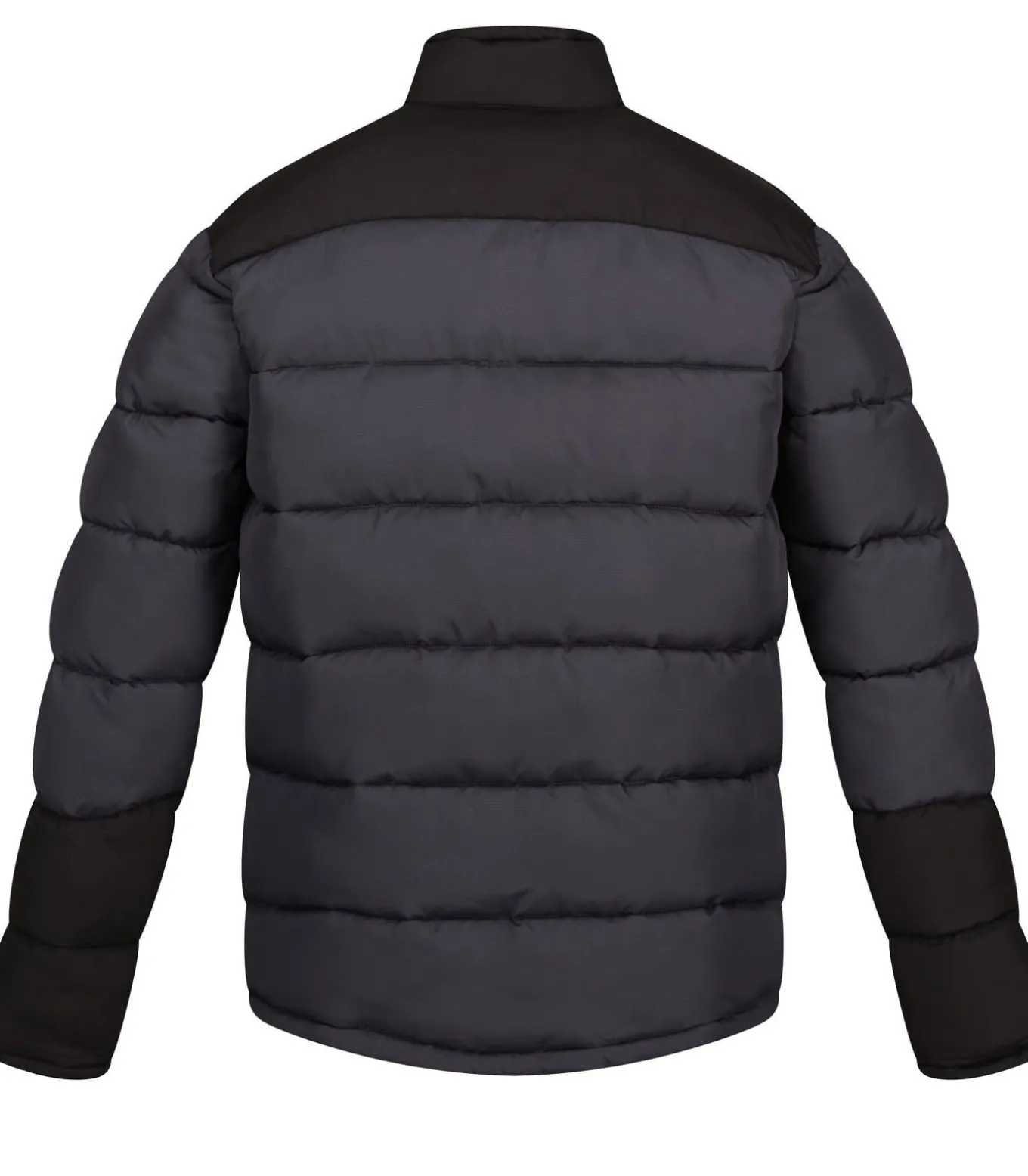 Dit geïsoleerde pufferjack van Regatta Mens is ontworpen voor koud weer. Het heeft een 100% polyester buitenkant die isolerend en waterafstotend is. De vulling is gemaakt van zwaar gerecycled materiaal voor optimale warmte. Het quiltpatroon heeft contrasterende details. Lange mouwen met stormmanchetten beschermen de armen. Een opstaande kraag omsluit de nek. Voor opslag zijn er twee zijzakken met rits. De rits over de hele lengte sluit de jas. Deze vintage–geïnspireerde stijl is zeer geschikt voor koele herfstdagen.