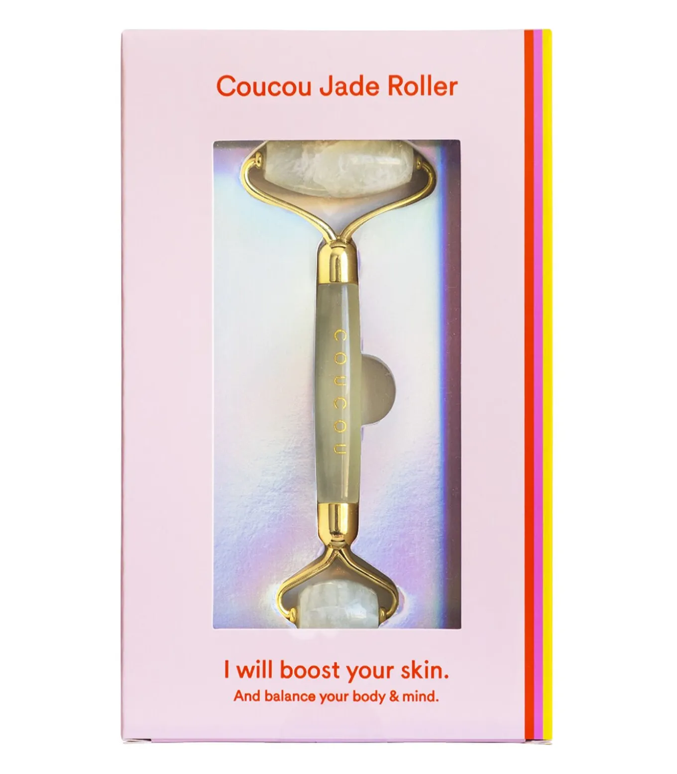 Creëer je eigen Coucou Home Spa en verbeter de huid met de Coucou Jade Roller. Dit eeuwenoude Chinese schoonheidsritueel masseert de huid en onderliggende spieren voor een stralende teint. De oorsprong van het rollen ligt in de Traditionele Chinese Geneeskunde en gaat terug tot de 7e eeuw waar dit prachtige hulpmiddel ooit werd gebruikt om Qi (vitale energieën) en lichaamsvocht te stimuleren. Gemaakt van 100% Jade, waarvan bekend is dat het helpt het zenuwstelsel te ontspannen en gifstoffen uit de huid te verwijderen. Er wordt ook aangenomen dat Jade de verbinding tussen lichaam en geest in evenwicht brengt en slechte energie verdrijft.–Stimuleert bloedcirculatie –Vermindert donkere kringen en zwellingen–Lift en sculpt gezicht en hals–Stimuleert collageen productie–Vermindert fijne lijntjes–Verbetert de huidteint en textuur–Geeft de huid een natuurlijke glow