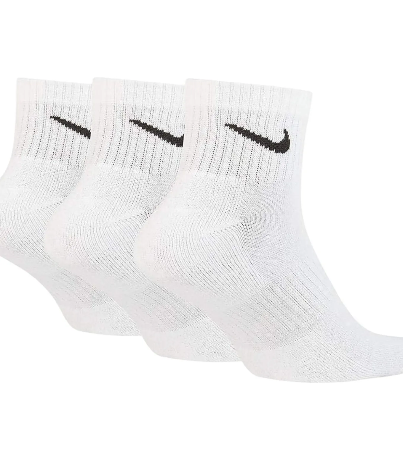 Nike Cushioned Sokken Wit (71% Katoen, 27% Polyester, 2% Elastaan) – Dit product is een duurzame keuze van de bekende merk Nike. Het ontwerp is eenvoudig met het logo van de merk en is beschikbaar in wit. Deze sokken worden gekenmerkt door Dri–FIT technologie, waardoor je voeten droog blijven tijdens uw sporten. Deze sokken hebben een enkel snit, versterkt, schokabsorberend en gelast.