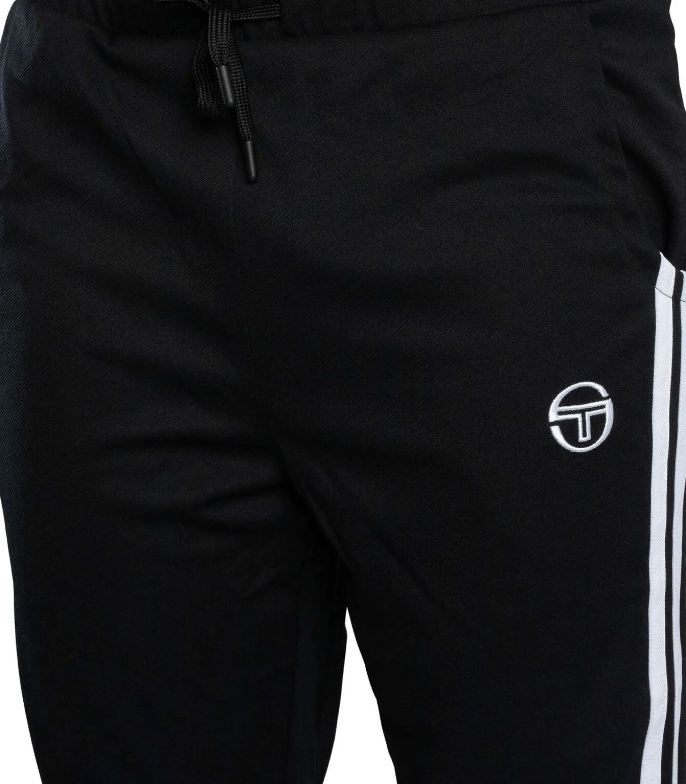 De Damarindo Track Joggers van Sergio Tacchini in zwart/wit combineren een retrostijl met een praktisch design. Met geborduurde merkdetails, open zijzakken, een trekkoord in de taille en elastische enkelboorden bieden ze een veilige pasvorm en casual veelzijdigheid, wat Sergio Tacchini’s sportieve erfgoed weerspiegelt.