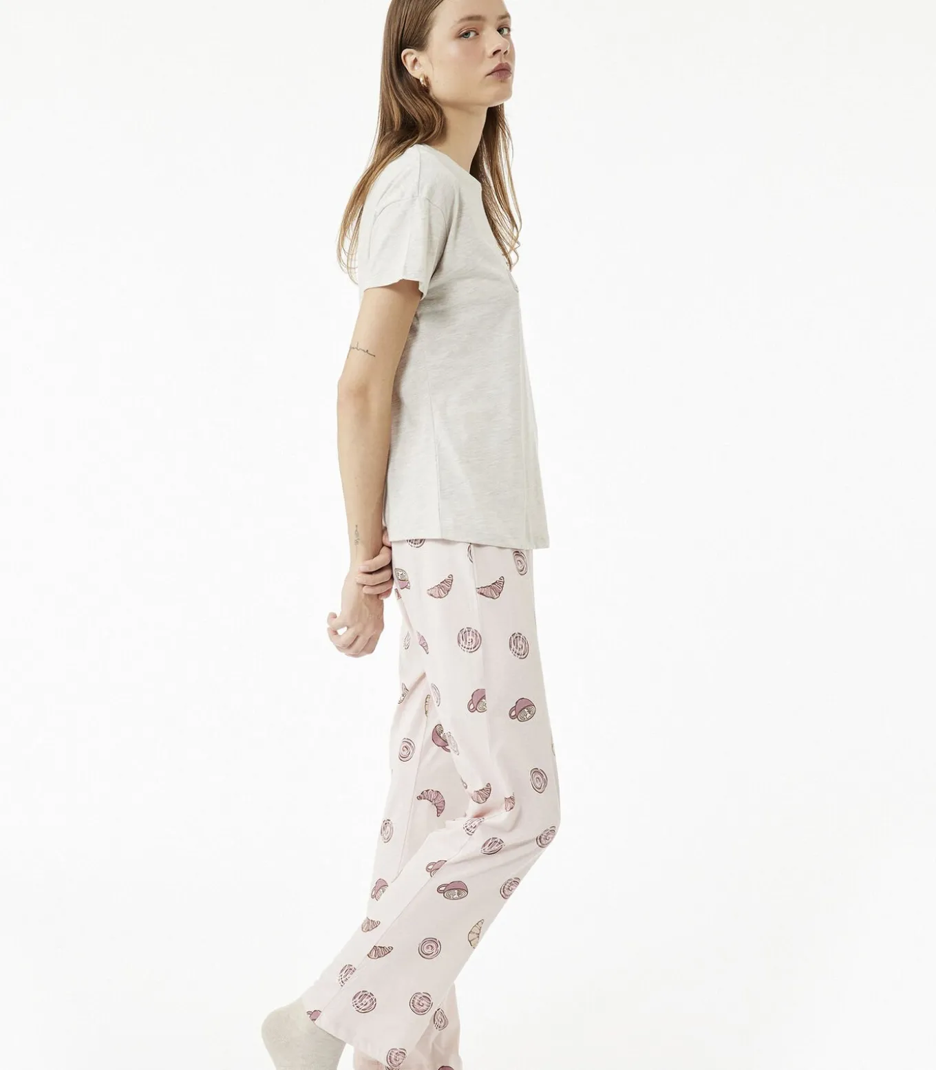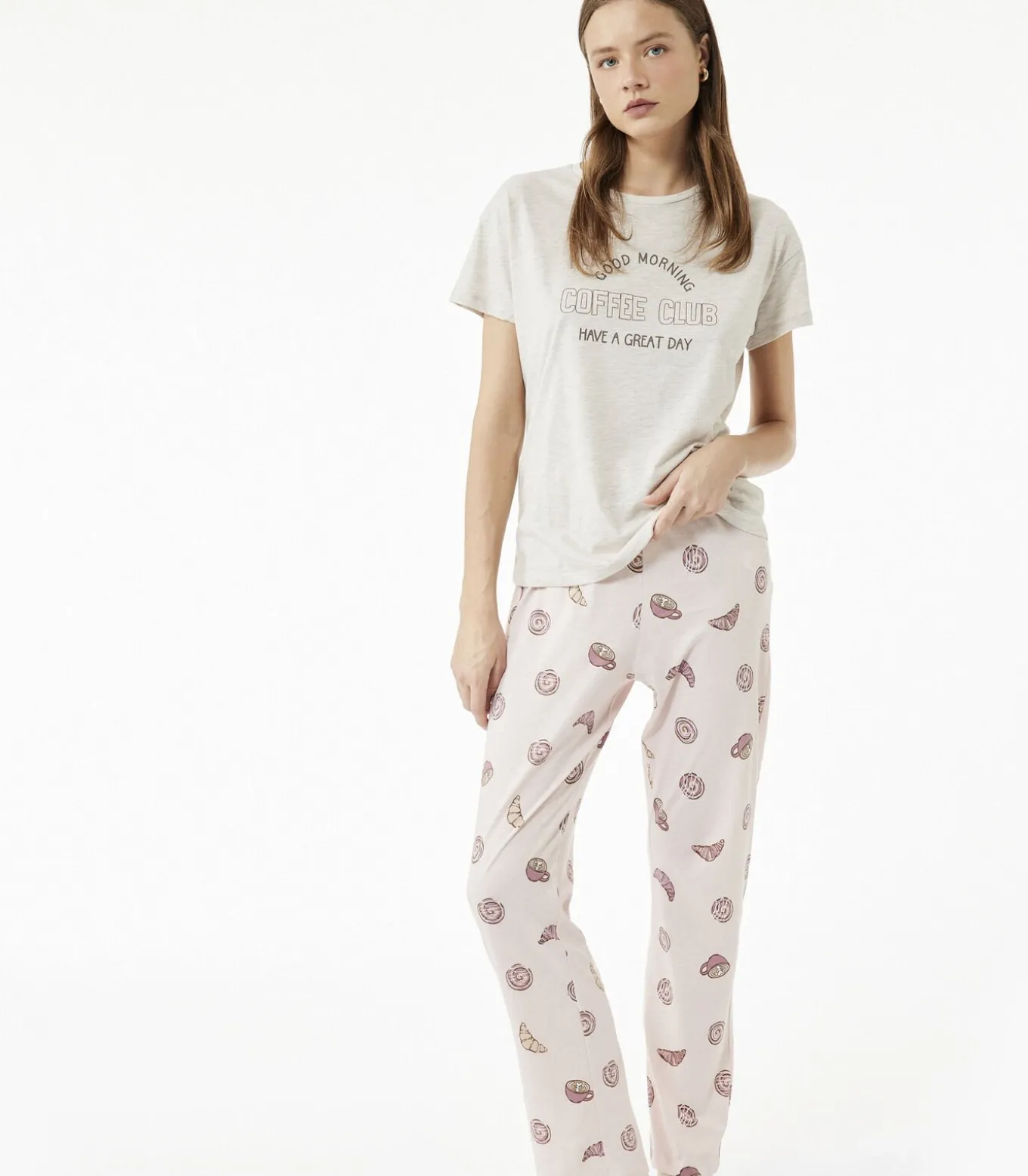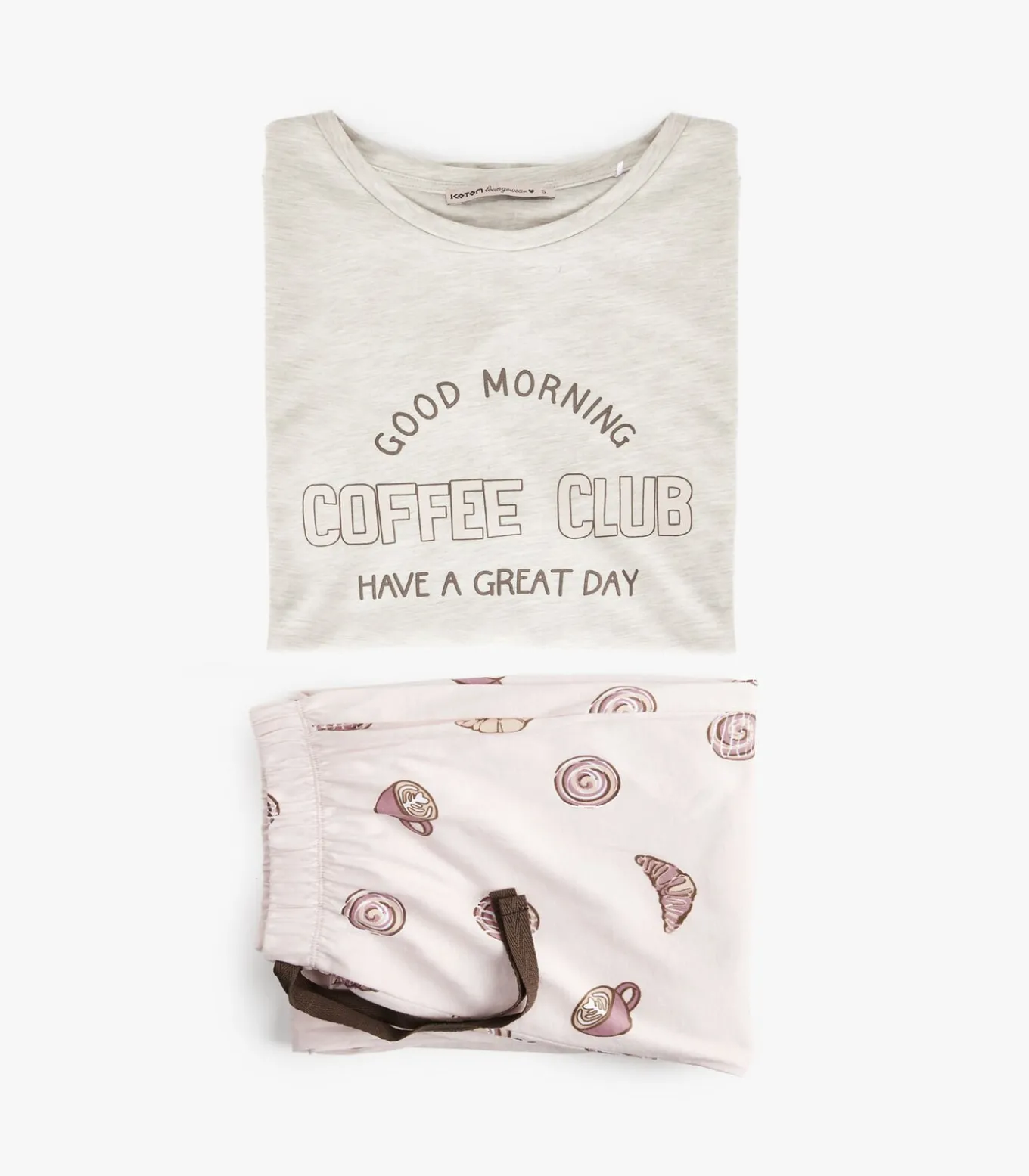 Deze comfortabele pyjama set voor dames is ideaal voor een goede nachtrust en ontspannen momenten thuis. Gemaakt van 100% katoen biedt het ultiem comfort en zachtheid. De top heeft een ronde hals en lange mouwen en is voorzien van een leuke print die charme toevoegt aan je avondroutine. De broek heeft een stretchy tailleband voor extra comfort en een speels dessin dat een vrolijke uitstraling geeft. Perfect te combineren met een zachte ochtendjas voor extra warmte tijdens koude nachten.