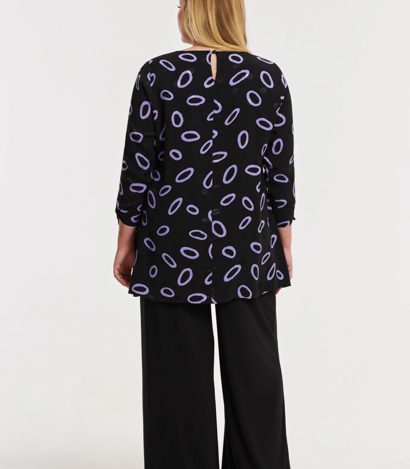 Maatindicatie: Plus–Size Kleding Mouwlengte: 52 cm in maat 42/44 Totale lengte: 83 cm in maat 42/44 Borstbreedte: 58 cm in maat 42/44 Het model is 177 cm lang en draagt maat 42/44