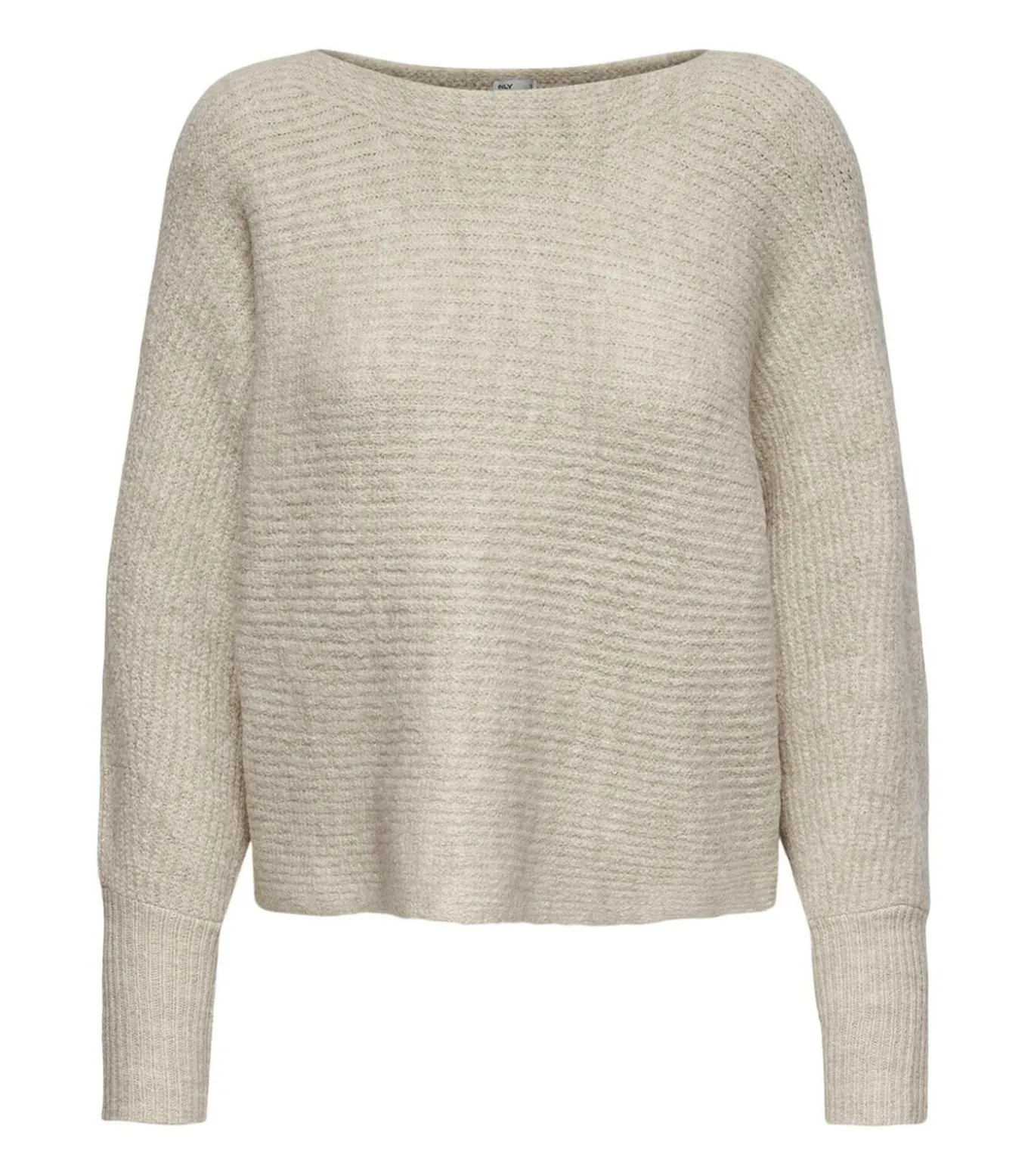 – Gebreide trui– Boothals– Geribde rand onderaan de mouwen– Een losse pasvorm– Lengte: 55 cm in maat M– Het model draagt maat S
