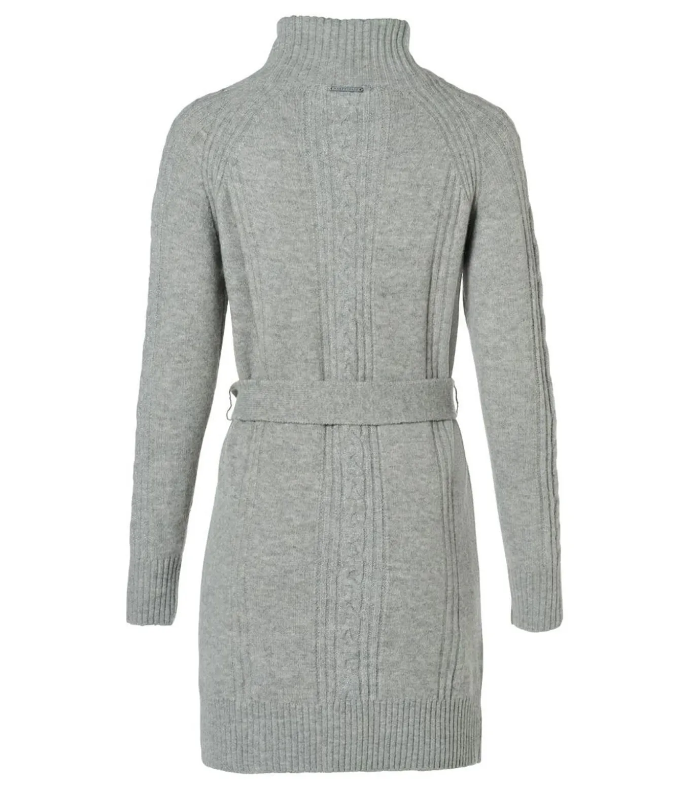 Ga voor stijlvolle knitwear met deze lichtgrijze kabelgebreide tuniek met col uit de collectie van Mart Visser. Perfect voor vrouwen die houden van een luxe uitstraling in een comfortabel design. De zachte, lichte grijstint is verrijkt met subtiele zilverkleurige lurexdraden, wat zorgt voor een verfijnde glans. Het kabelbreisel op het voorpand en de mouwen geeft een klassieke, cosy uitstraling, terwijl de moderne pasvorm en details voor een eigentijdse look zorgen. De hoogwaardige mix van polyester, nylon, acryl, wol en spandex maakt de tuniek warm, zacht, licht rekbaar en vormvast. De col en brede ribboorden dragen bij aan de moderne stijl, terwijl de raglanmouwen extra bewegingsvrijheid en een sportieve uitstraling bieden. Met het losse strikceintuur accentueer je eenvoudig je taille. Op de achterzijde vind je een subtiel Mart Visser metalen logo als elegant detail. De tuniek valt iets over de heup, waardoor hij perfect te combineren is met een skinny jeans, legging of panty. Stijl hem met laarzen en een crossbody tas voor een relaxte look, of ga voor panty en haklaarsjes voor een chique uitstraling. Dankzij de lichtgrijze tint past deze tuniek moeiteloos in zowel een neutrale als kleurrijke garderobe.