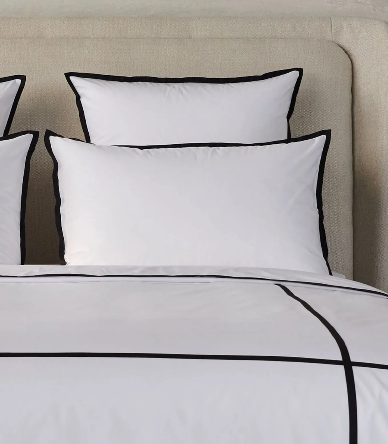 Voorkant effen wit met contrasterende zwarte applicatiestrips – Achterkant effen wit