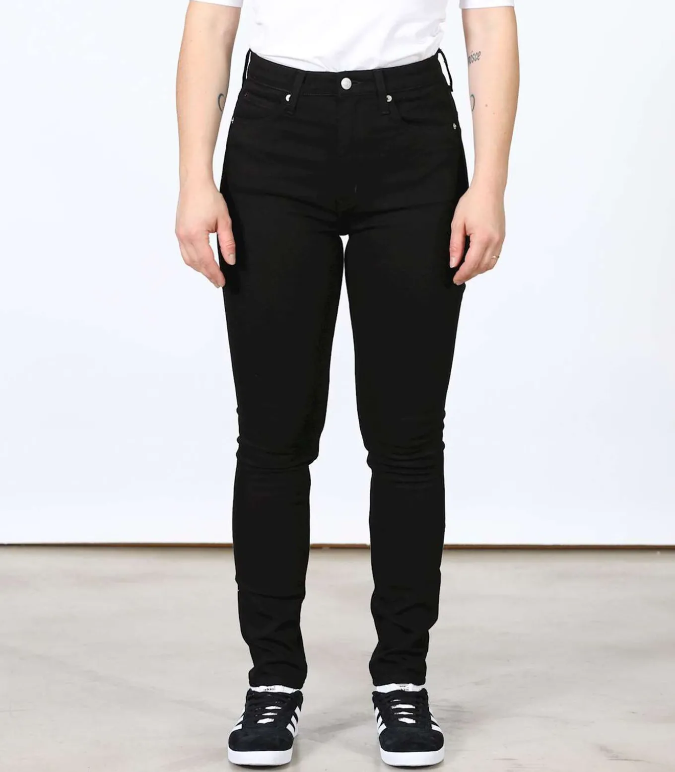 Specificaties: High–waisted stretchjeans met 5–pocket–stijl gulp met rits en ton sur ton stiksels aan de zijkant Pasvorm: High–waisted en smalle pijpen Model draagt maat: 28 Lengte model: 170 cm