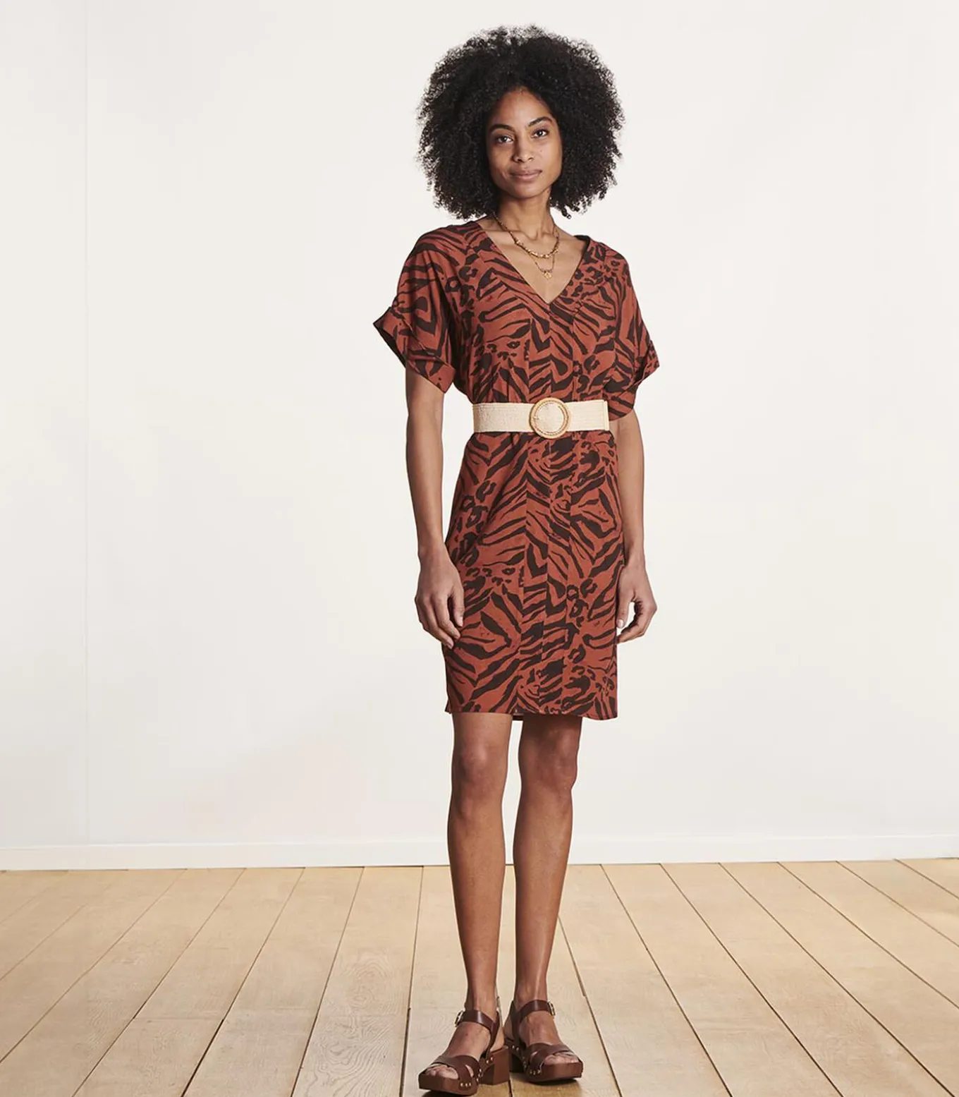 – Elastische textiel riem met bamboe gesp